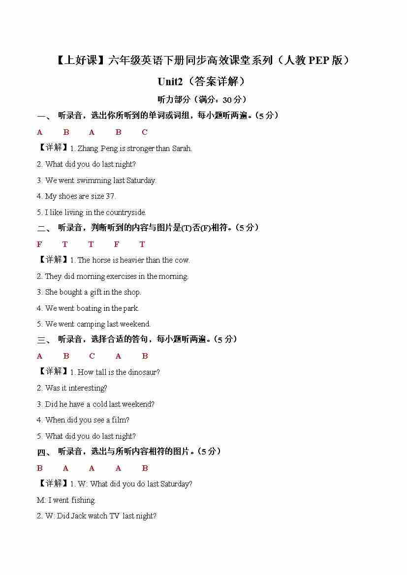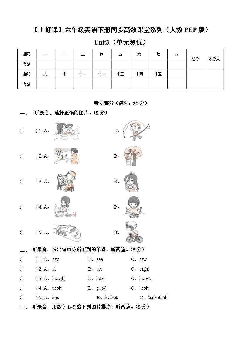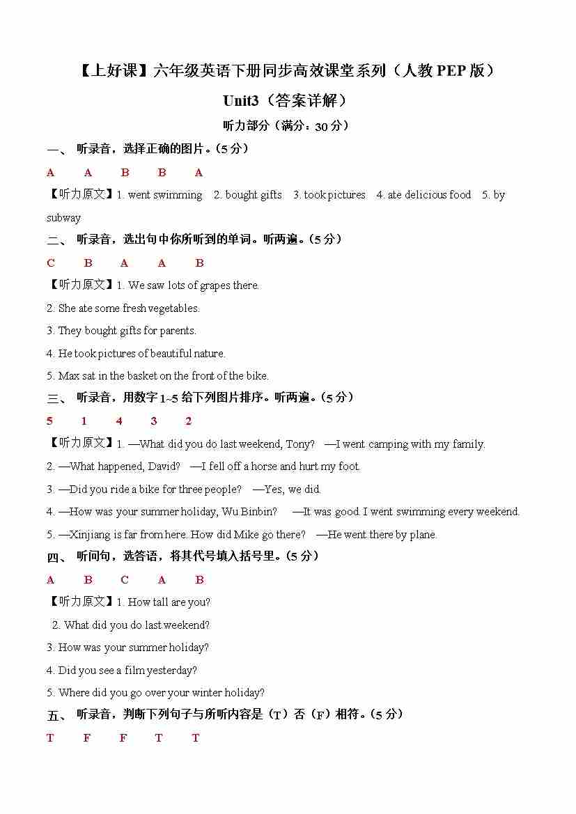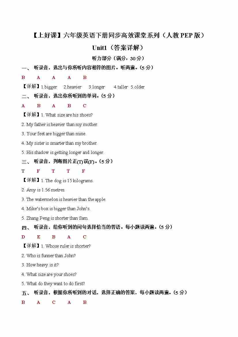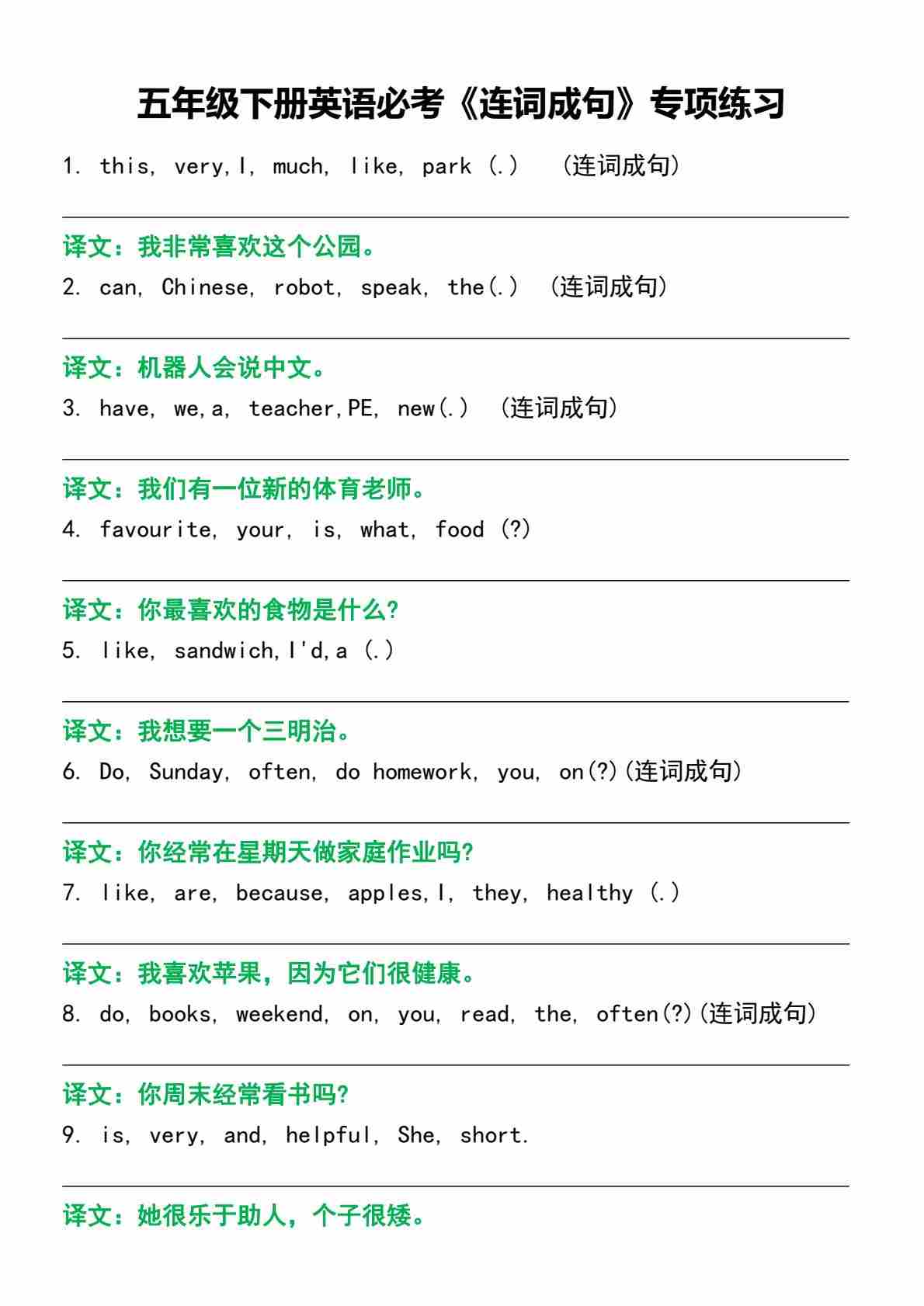 【(人教pep)用单词适当形式填空专项训练unit1-unit6】五下英语