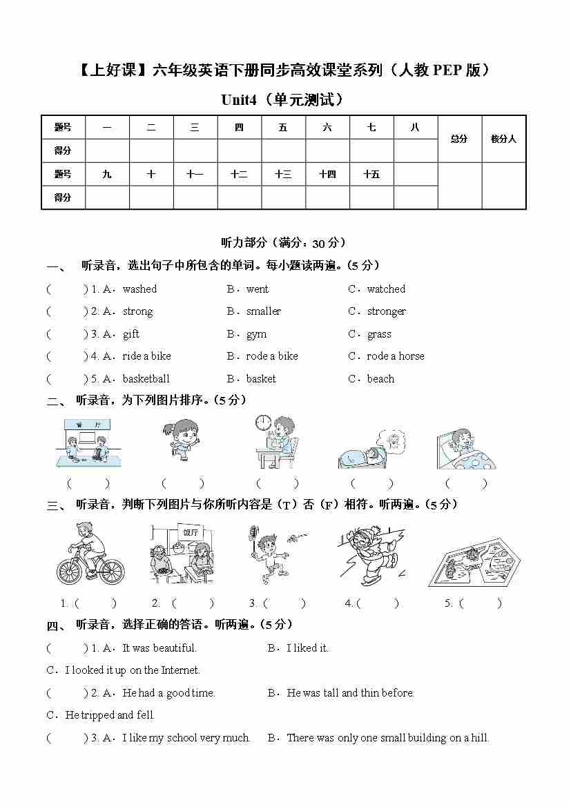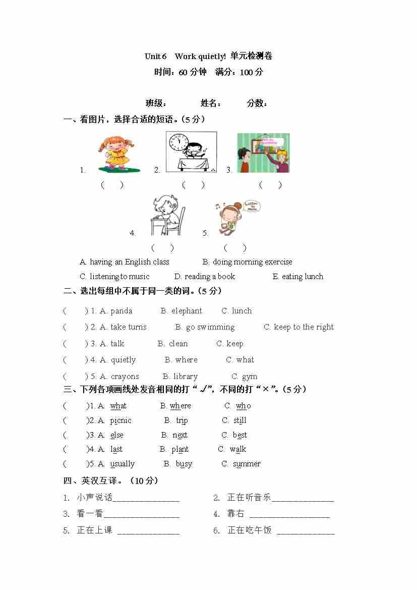 五年级下册英语单元检测卷-Unit 6 Work quietly 人教PEP(word版,含答案)_new