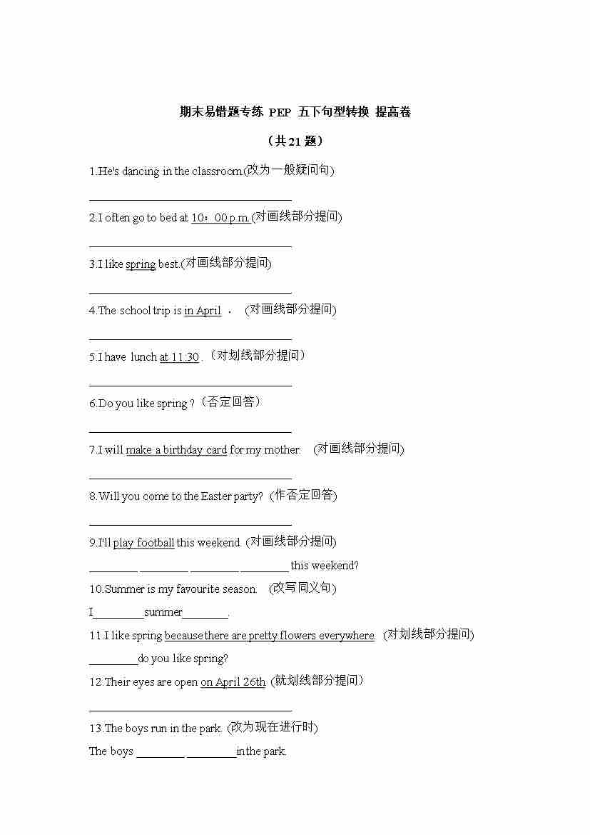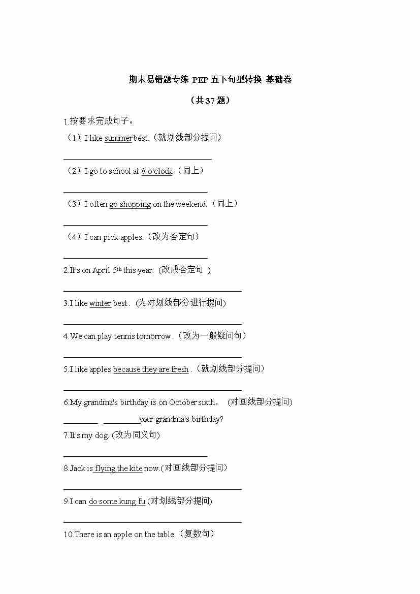 【期末易错题专攻】【基础卷】 五下英语句型转换(含答案 人教pep)_new