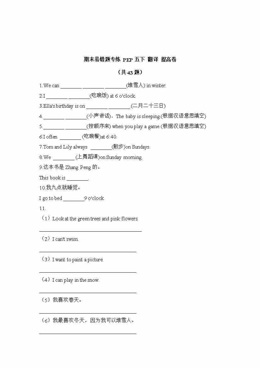 【期末易错题专攻】【提高卷】 五下英语 翻译 (含答案 人教pep)_new