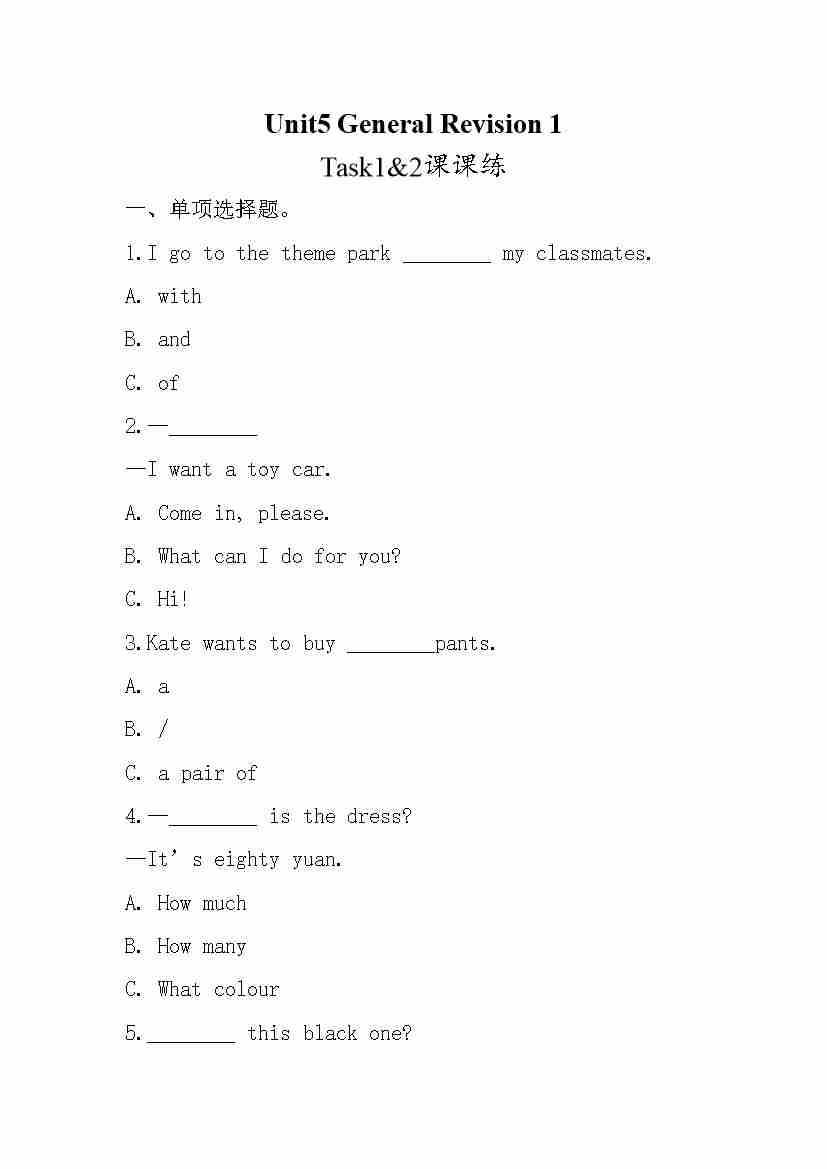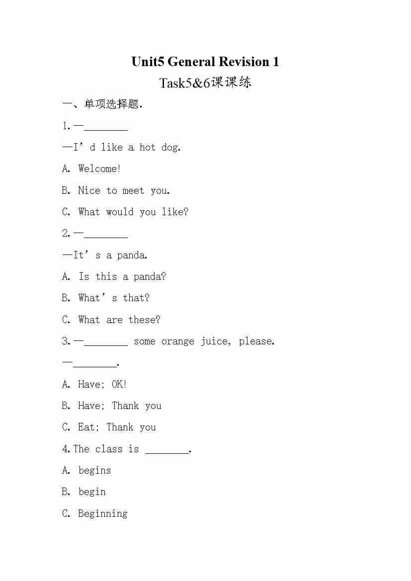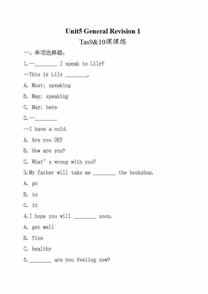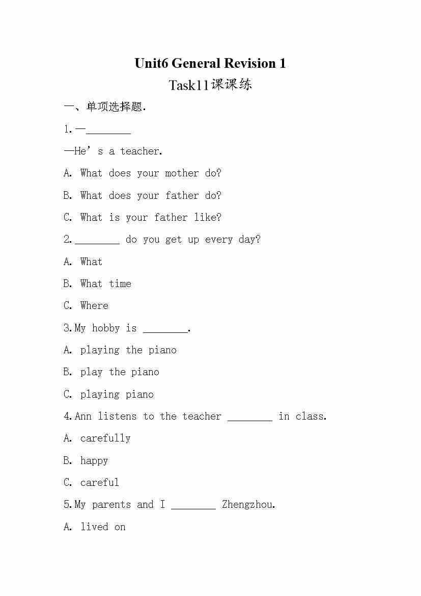Unit5General Revision Task1&2课课练-人教精通版-(无答案 )