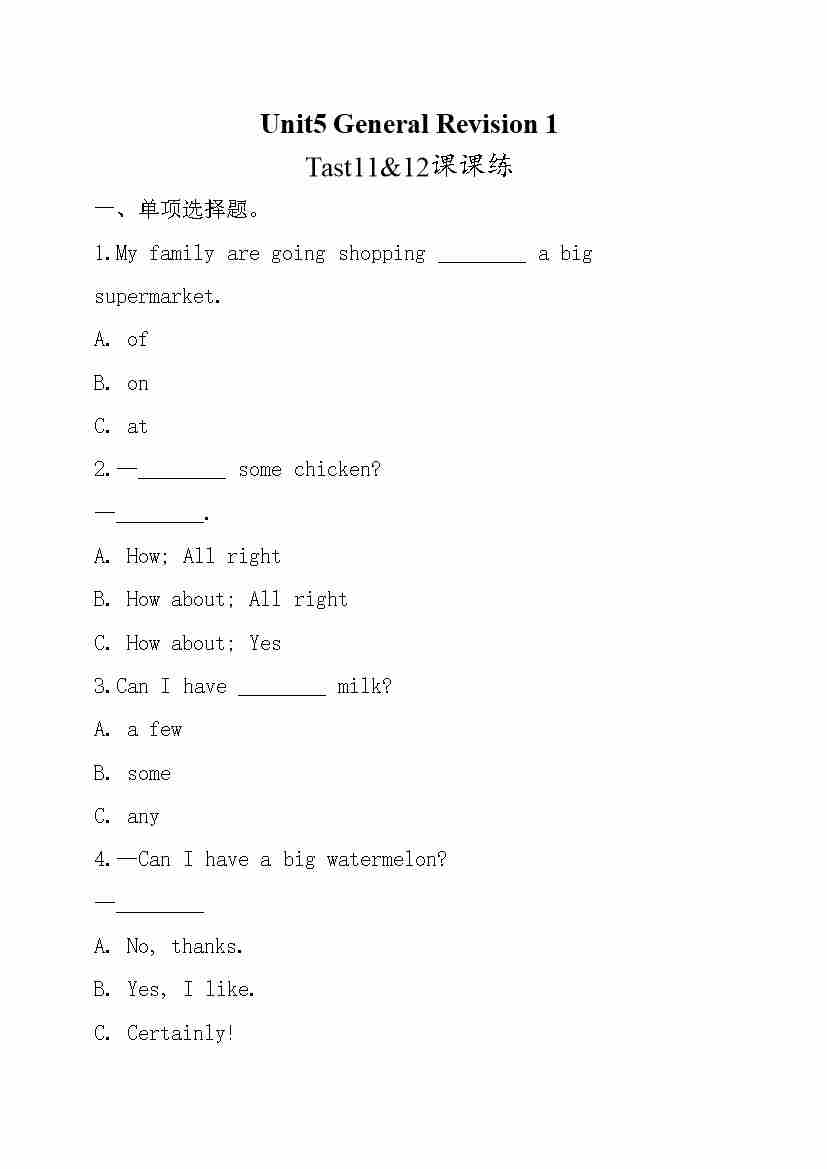 Unit5General Revision Task11&12课课练-人教精通版-(无答案 )