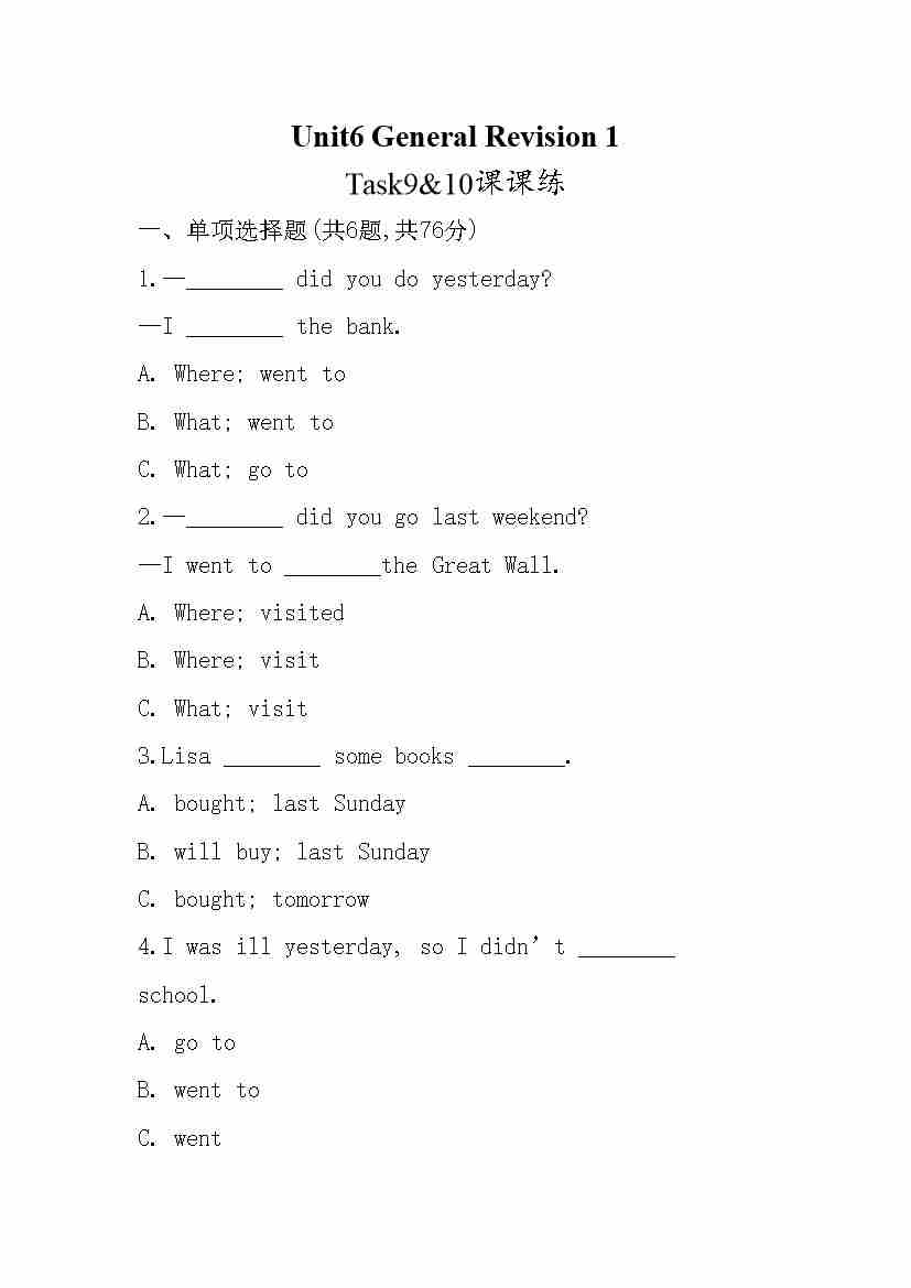 Unit6 General Revision Task1&2课课练-人教精通版-(无答案 )