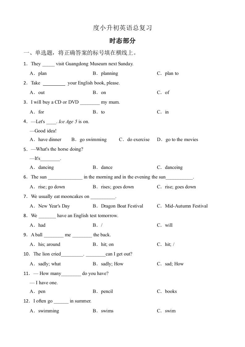 【专项提分】人教精通版小升初英语总复习-时态部分(B卷有答案)1