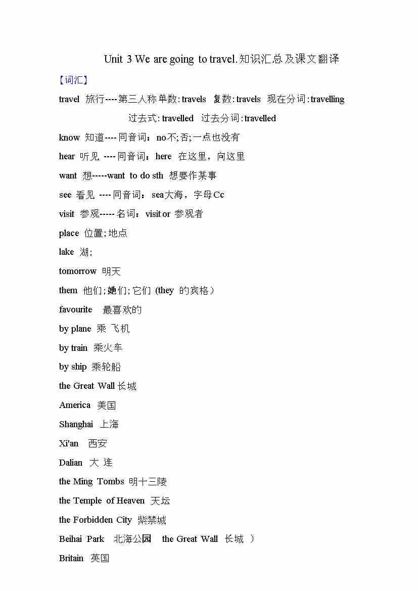 【精通版】六年级下册英语素材-Unit 3 We are going to travel 知识汇总及课文翻译