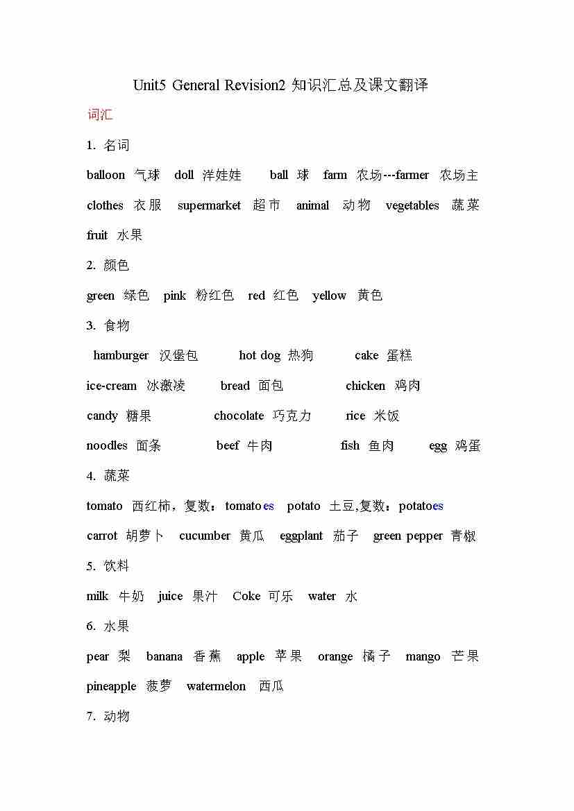 【精通版】六年级下册英语素材-Unit 5 General Revision2知识汇总及课文翻译
