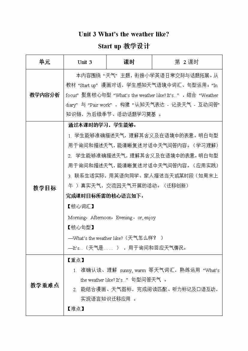 Unit 3 第2课时 Start up(教学设计)英语外研版三起四年级上册(新教材)