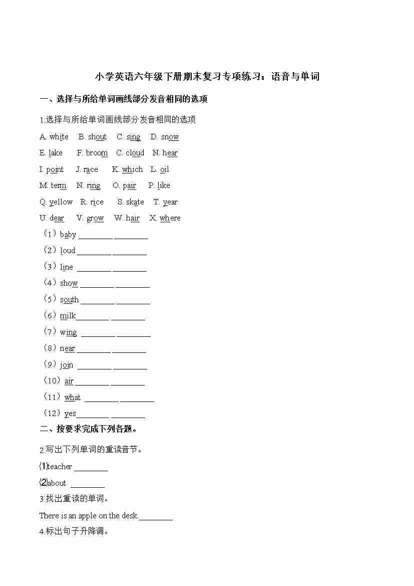 【精品复习专训】小升初英语专项训练--语音和词汇专项(含答案)人教精通版1
