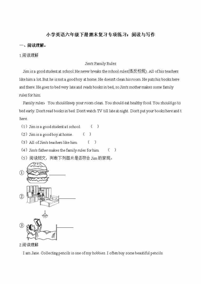 【精品复习专训】小升初英语专项训练--阅读专项(含答案)人教精通版1