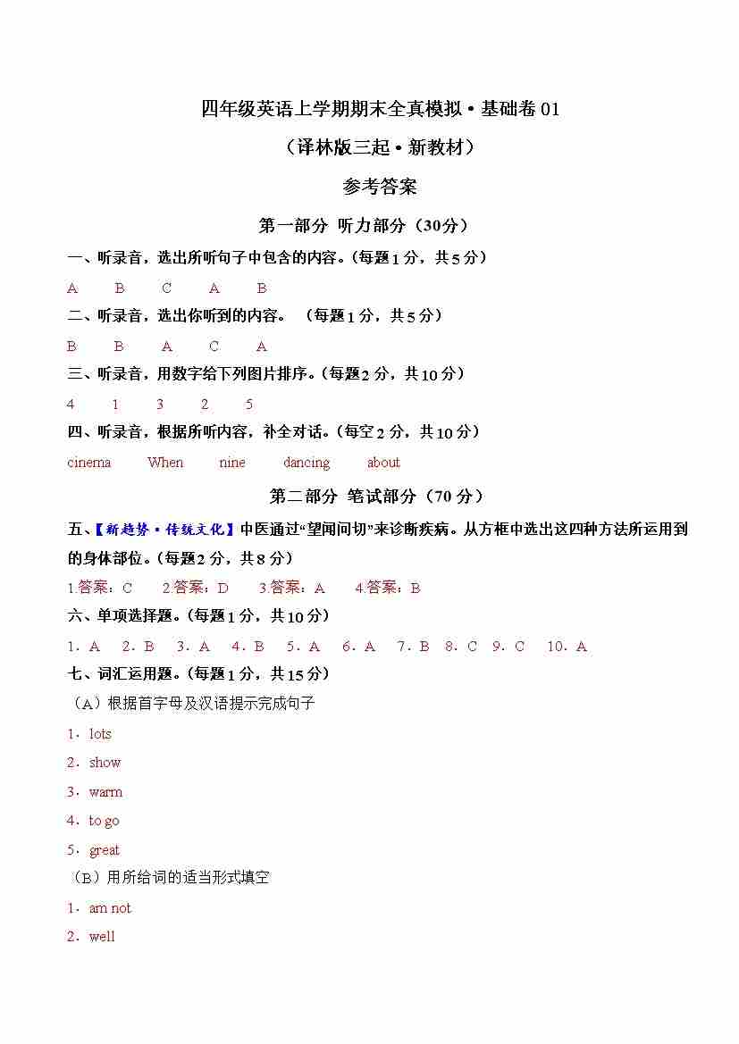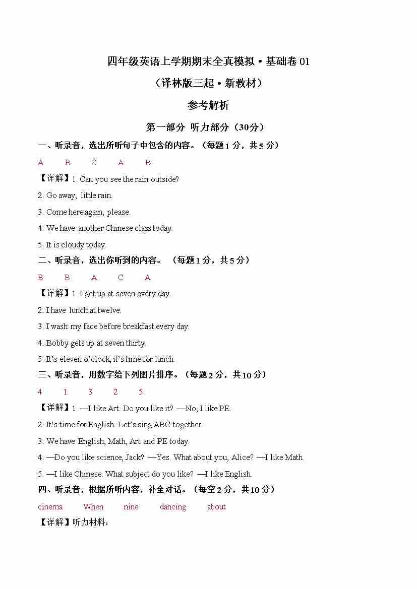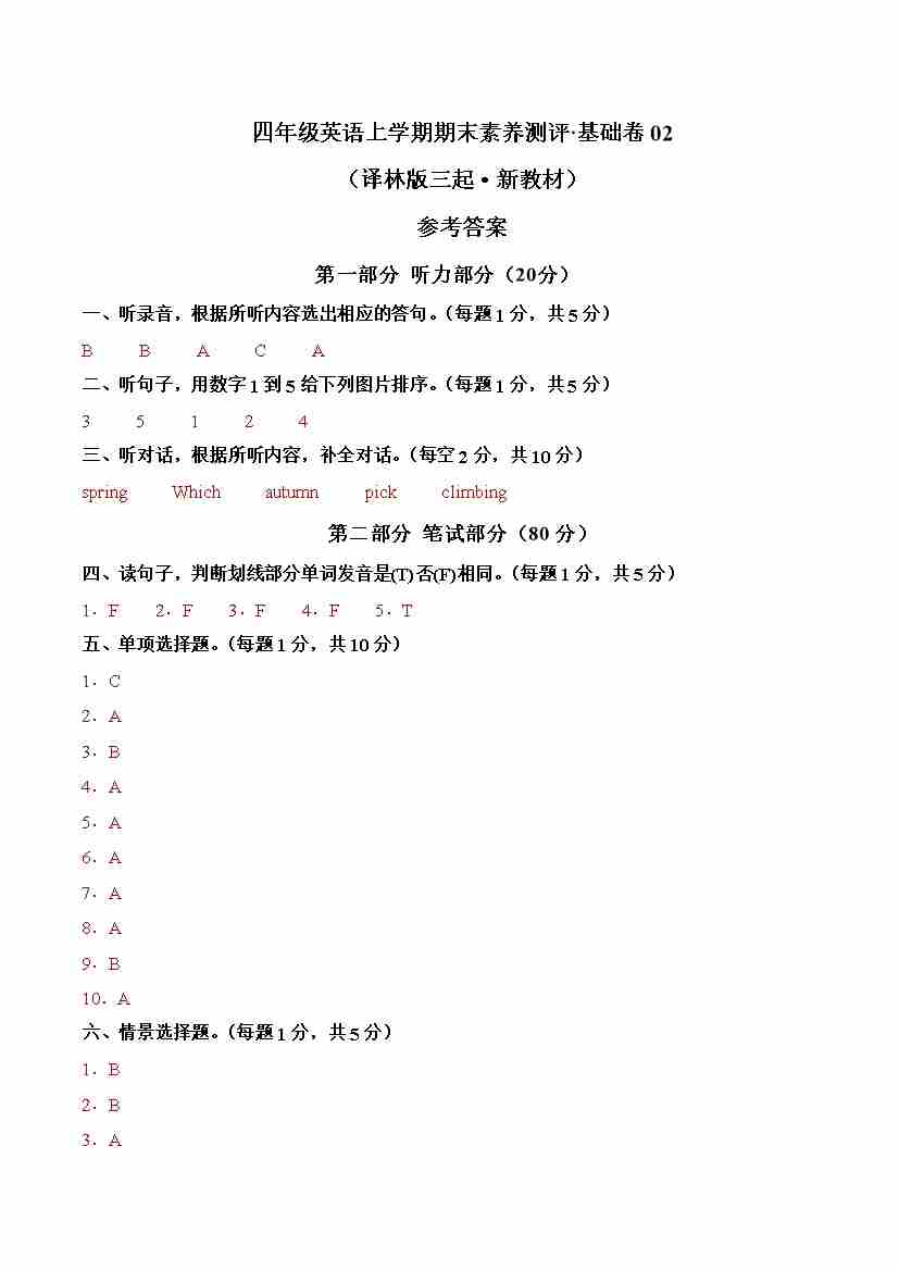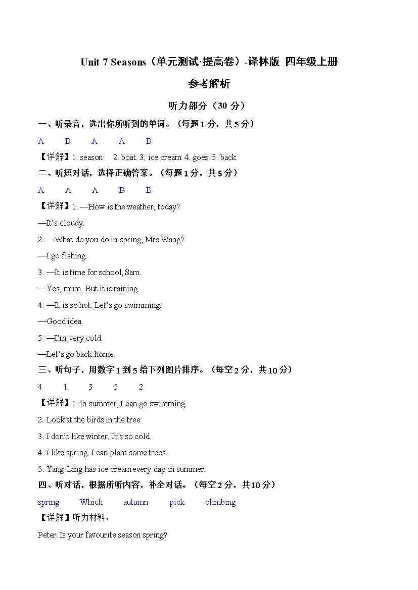 Unit 7 Seasons(单元测试·提高卷)译林版四年级上册(新教材)77