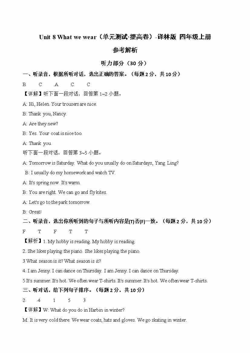 Unit 8 What we wear(单元测试·提高卷)译林版四年级上册(新教材)00