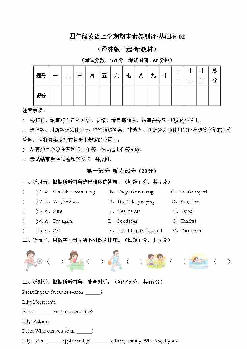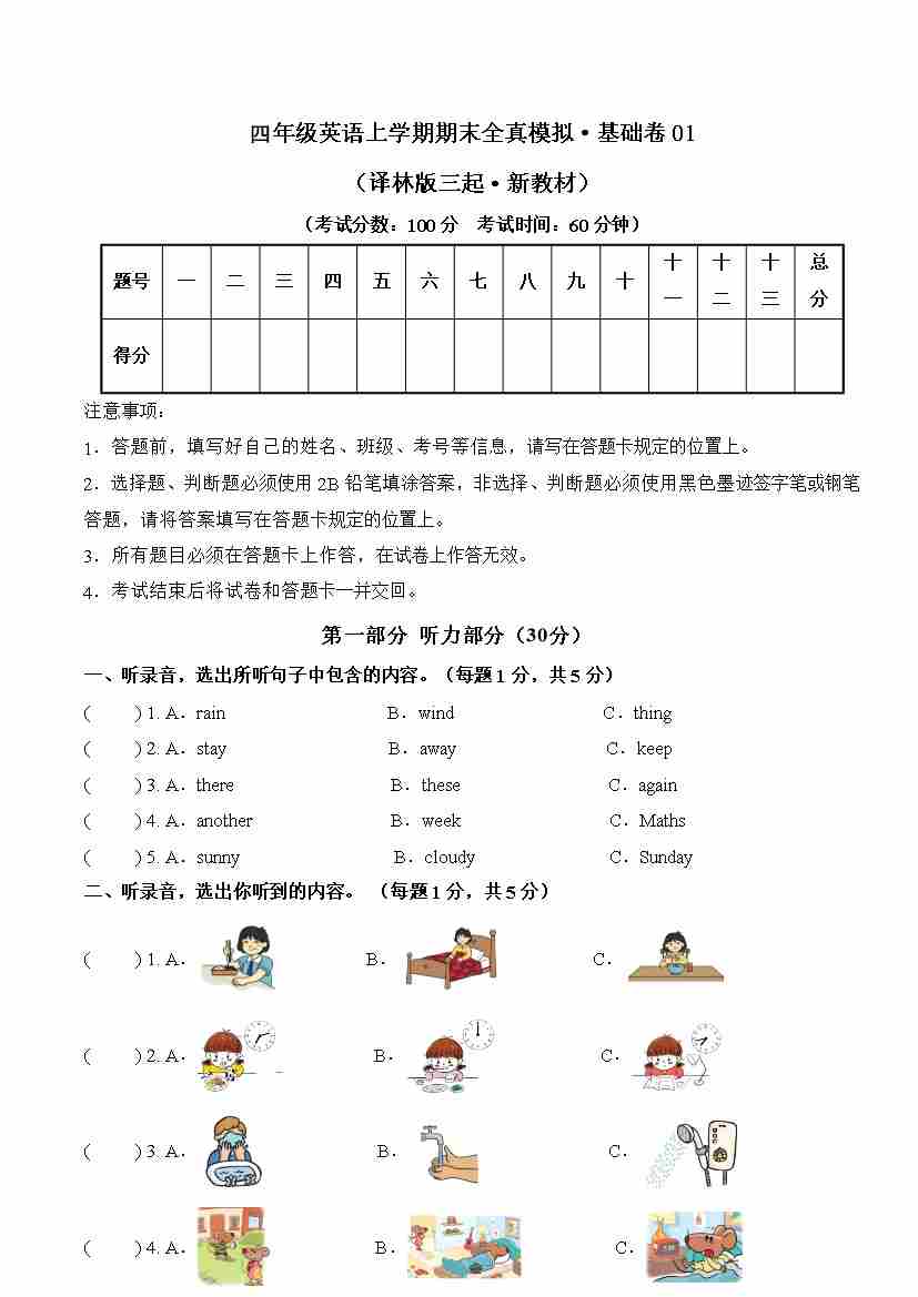 Unit 6 Weather(单元测试·提高卷)译林版四年级上册(新教材)333
