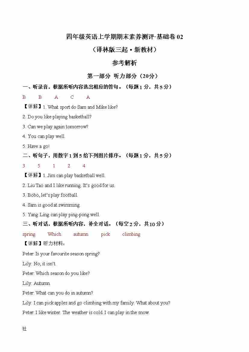 Unit 7 Seasons(参考解析)译林版四年级上册(新教材)66