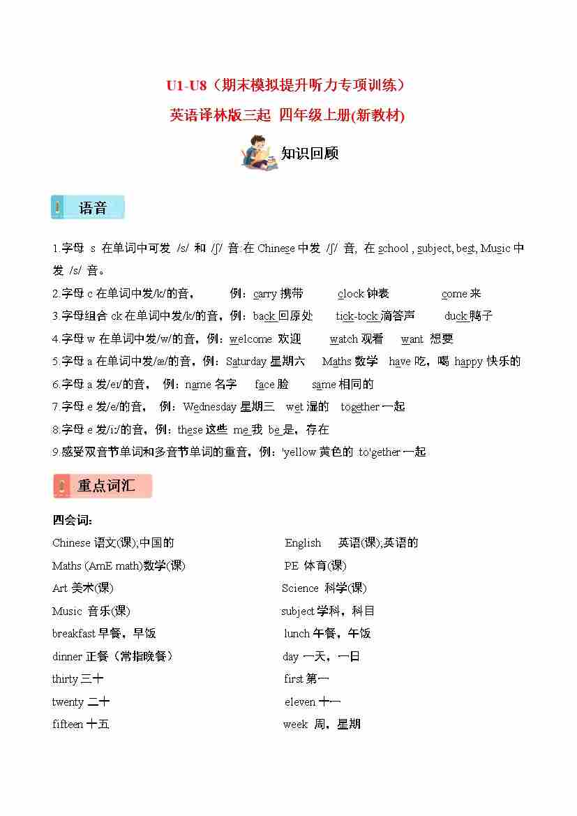 Unit 1-Unit 8 (听力音频)英语译林版三起 四年级上 新教材