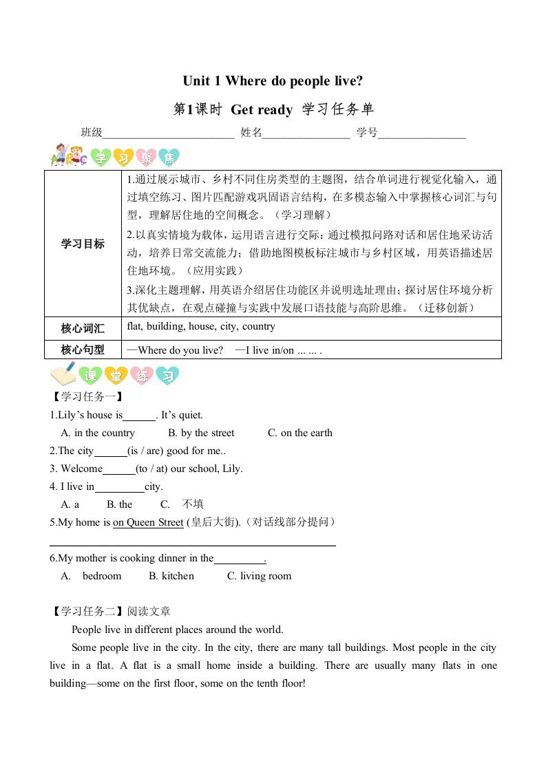 Unit 1 第1课时 Get ready(学习任务单)(新教材)
