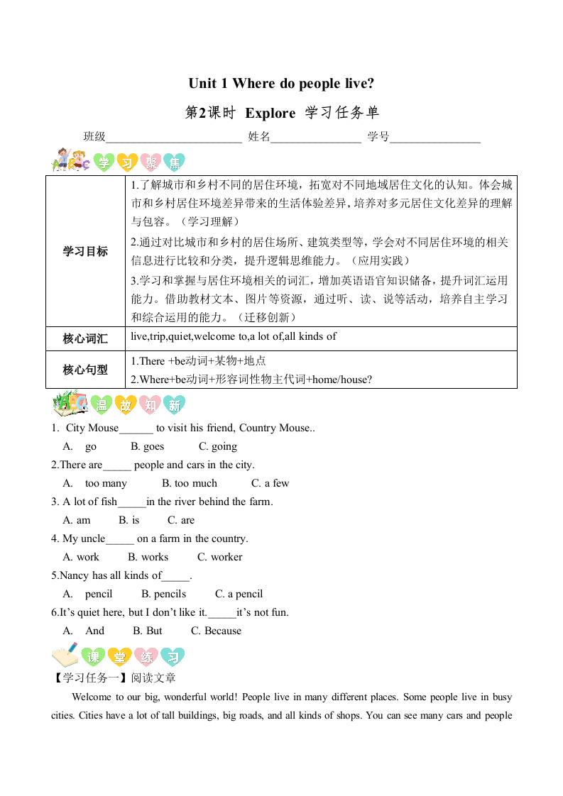 Unit 1 第2课时 Explore(学习任务单)(新教材)