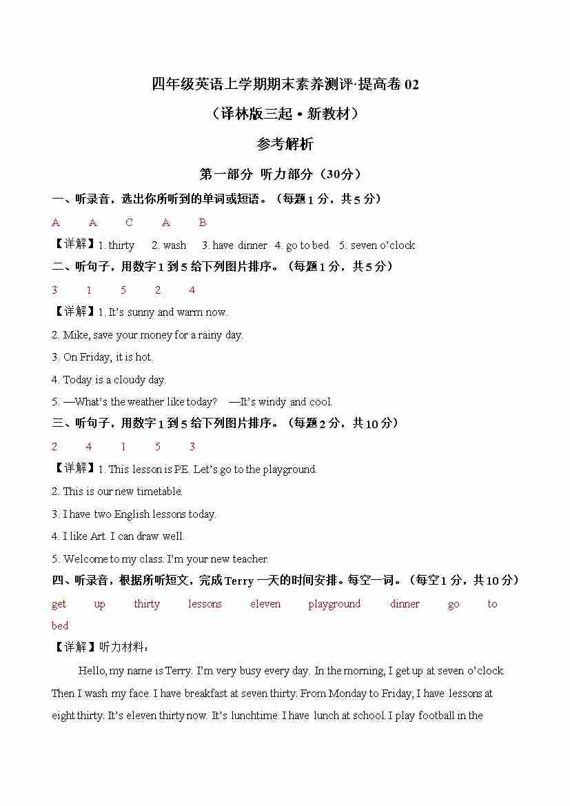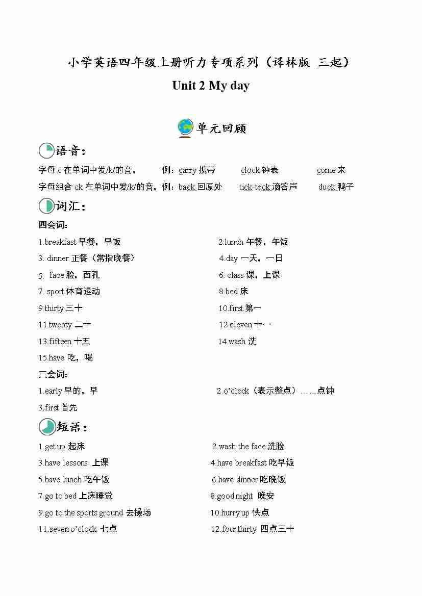 Unit 2 My day(单元听力专项训练)英语译林版三起四年级上册(新教材)