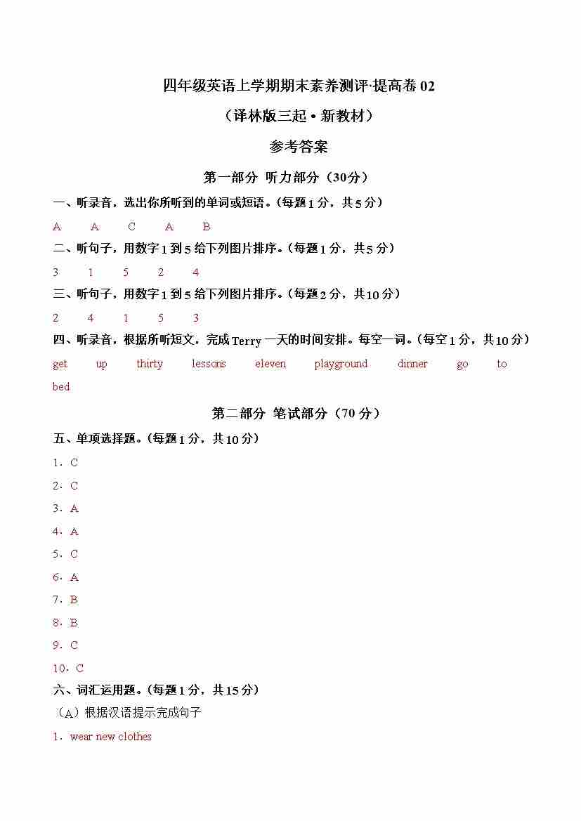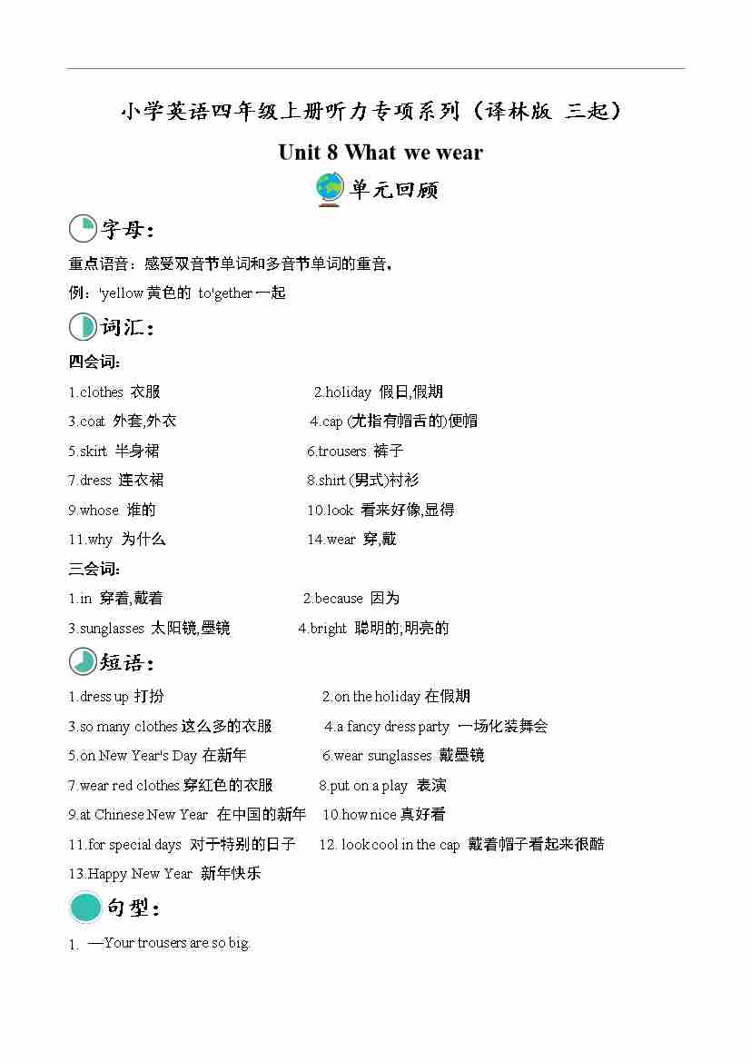 Unit 8 What we wear (单元听力专项训练)英语译林版三起 四年级上 新教材.