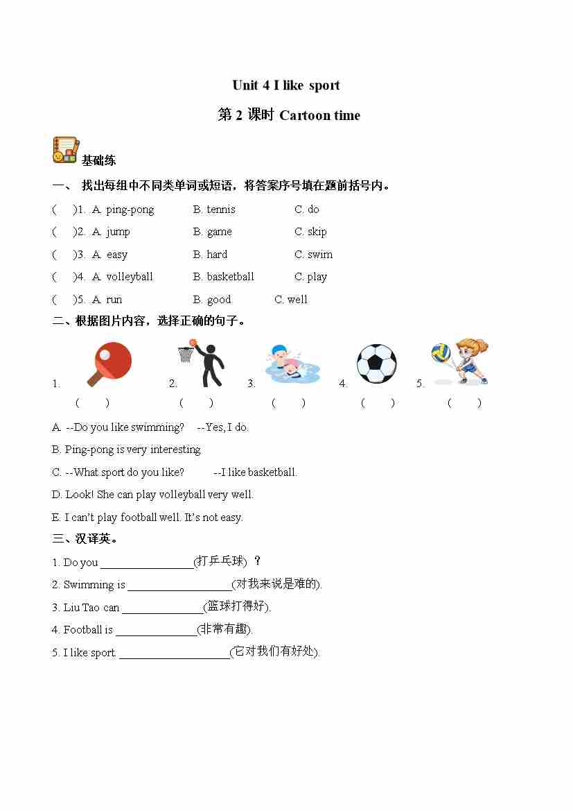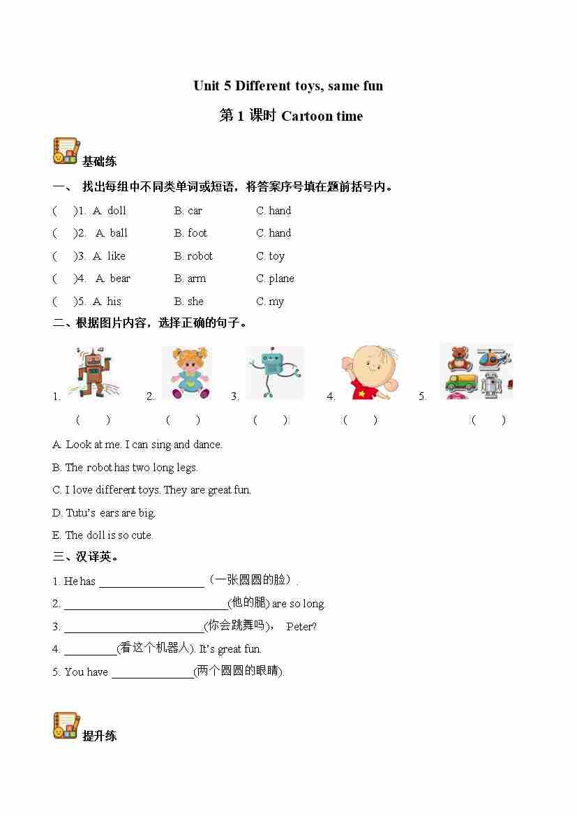 Unit 5 第1课时 Cartoon time(分层作业)英语译林版三起四年级上册(新教材)