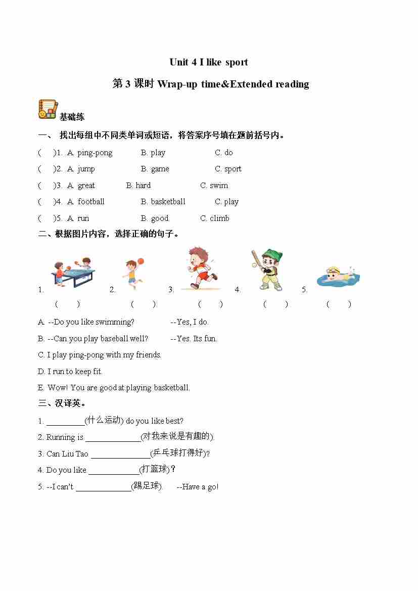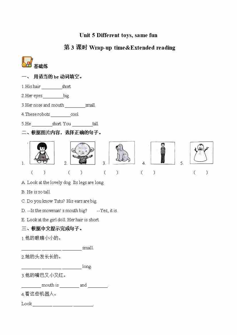 Unit 5 第3课时 Wrap-up time&Extended reading(分层作业)英语译林版三起四年级上册(新教材)