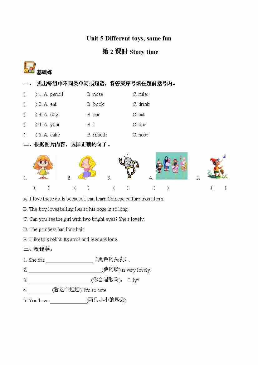 Unit 5 第2课时 Story time(分层作业)英语译林版三起四年级上册(新教材)