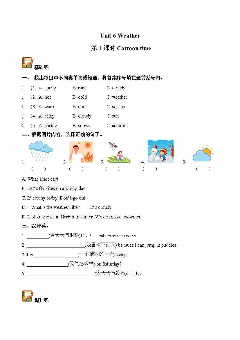 Unit 6 第1课时 Cartoon time(分层作业)英语译林版三起四年级上册(新教材)