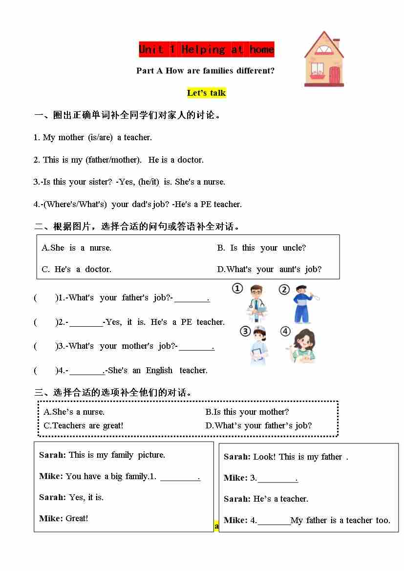 Unit 1 Helping at home Part A 同步练习(含答案)