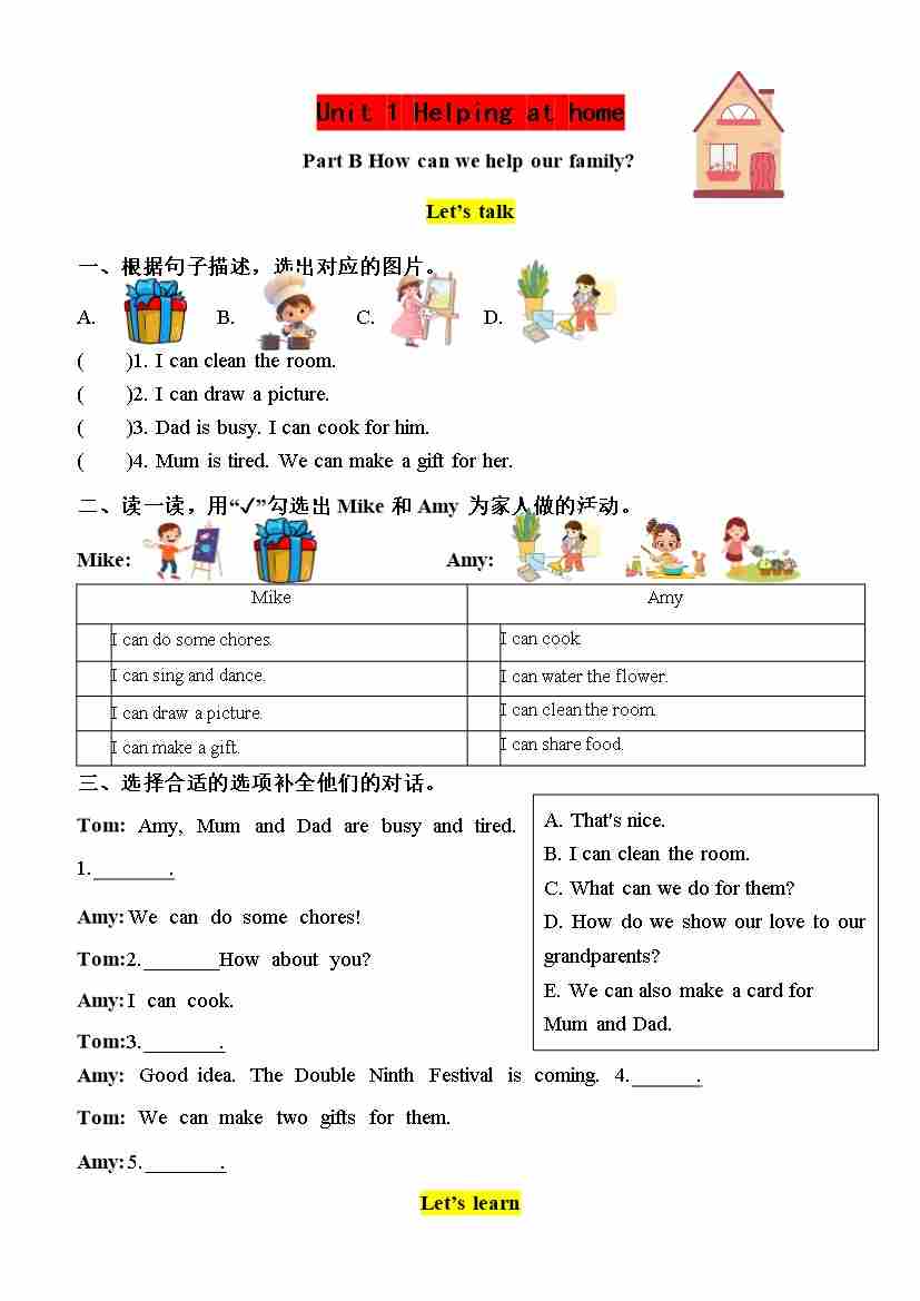 Unit 1 Helping at home Part B 同步练习(含答案)