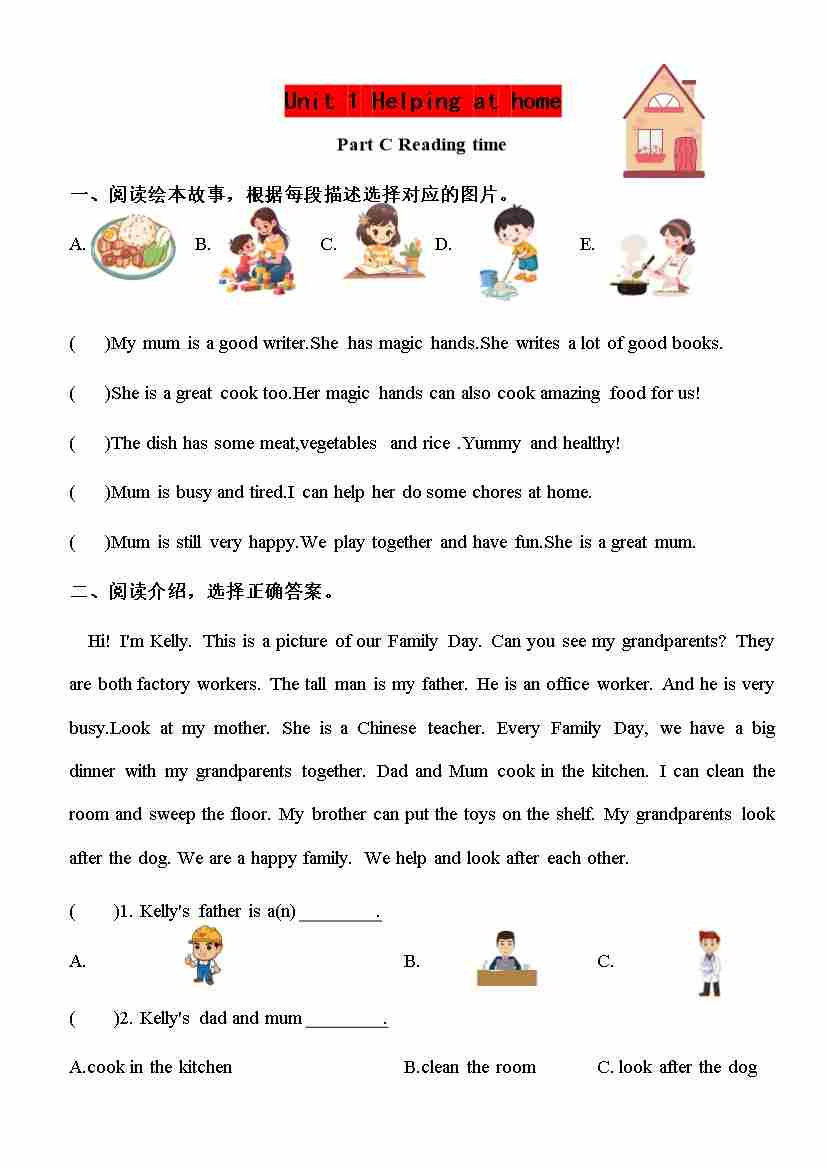 Unit 1 Helping at home Part C 同步练习(含答案)