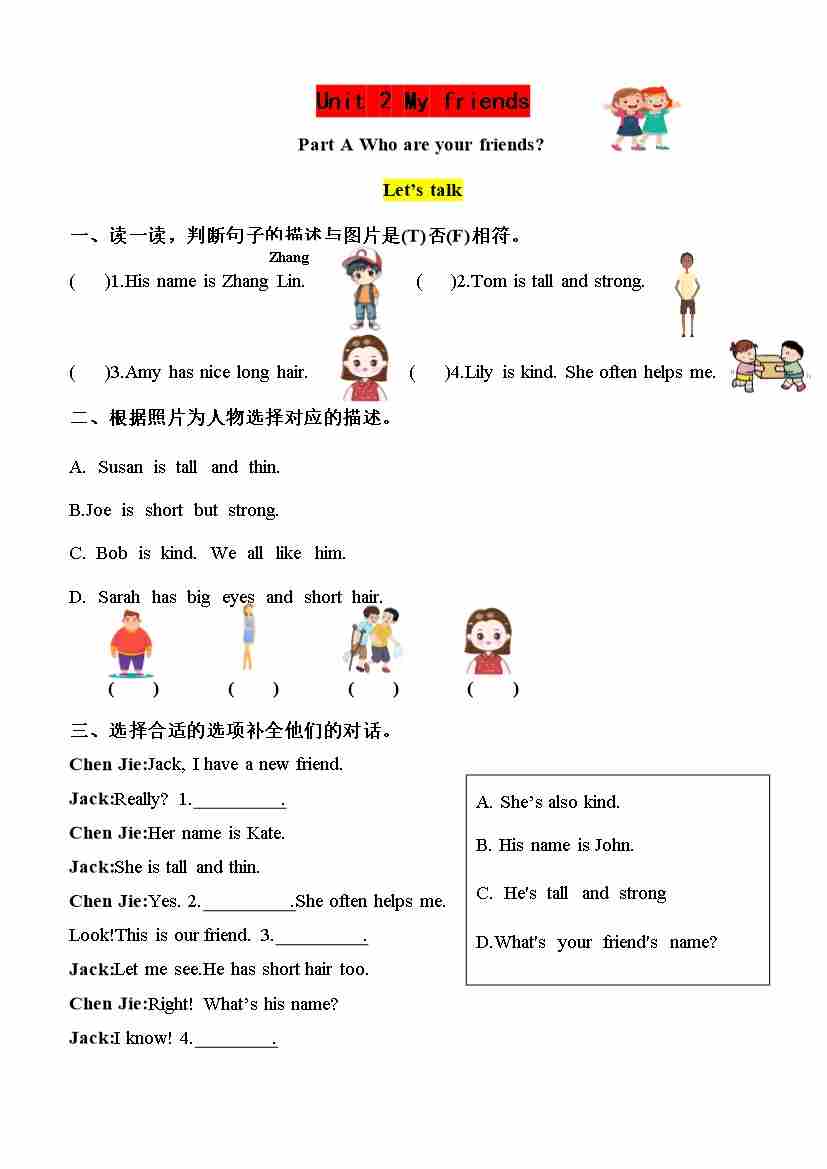 Unit 2 My friends Part A 同步课时练习(含答案)