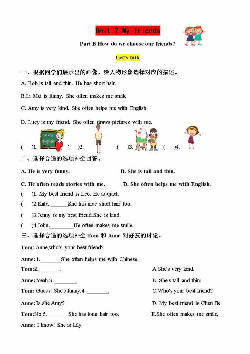 Unit 2 My friends Part B 同步课时练习(含答案)