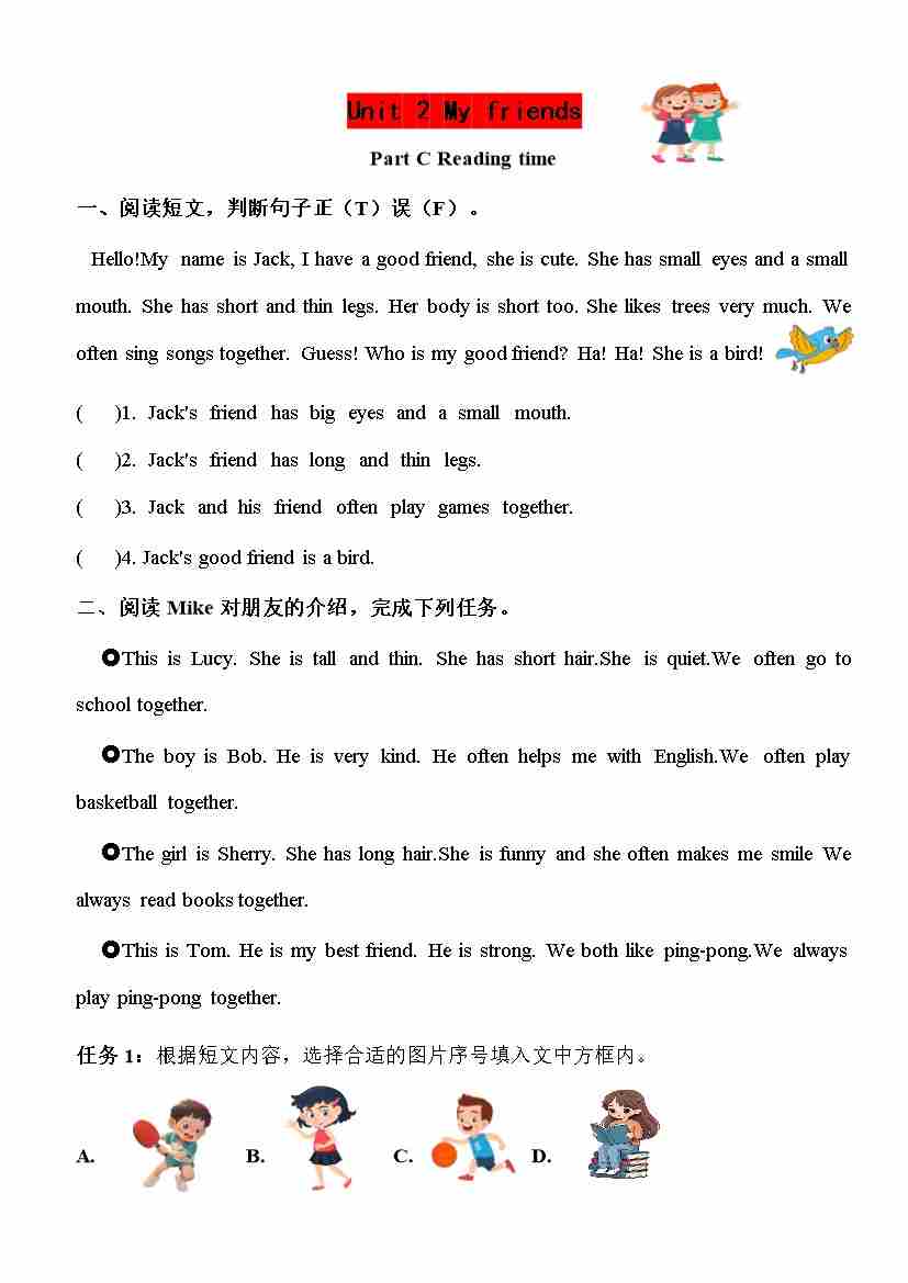 Unit 2 My friends Part C 同步课时练习(含答案)