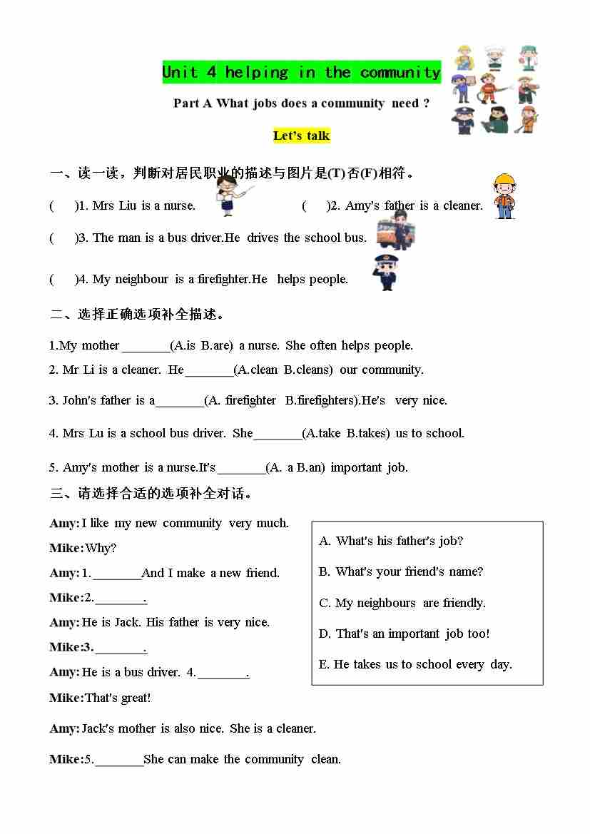 Unit 4 Helping in the community Part A 同步练习(含答案)