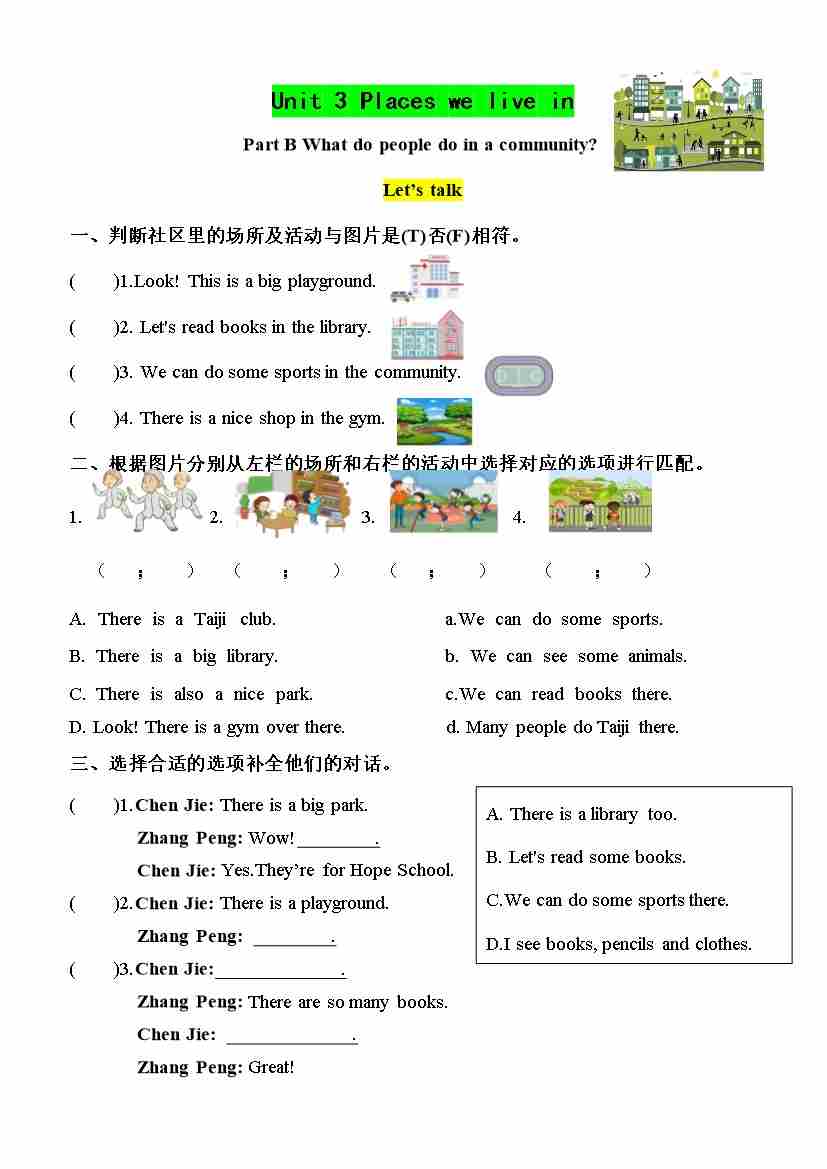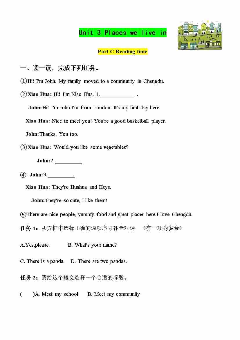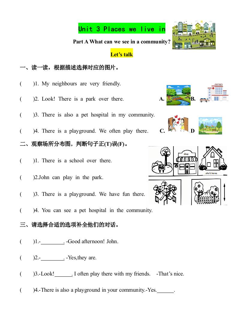 Unit3 Places we live in Part A 同步练习(含答案)1