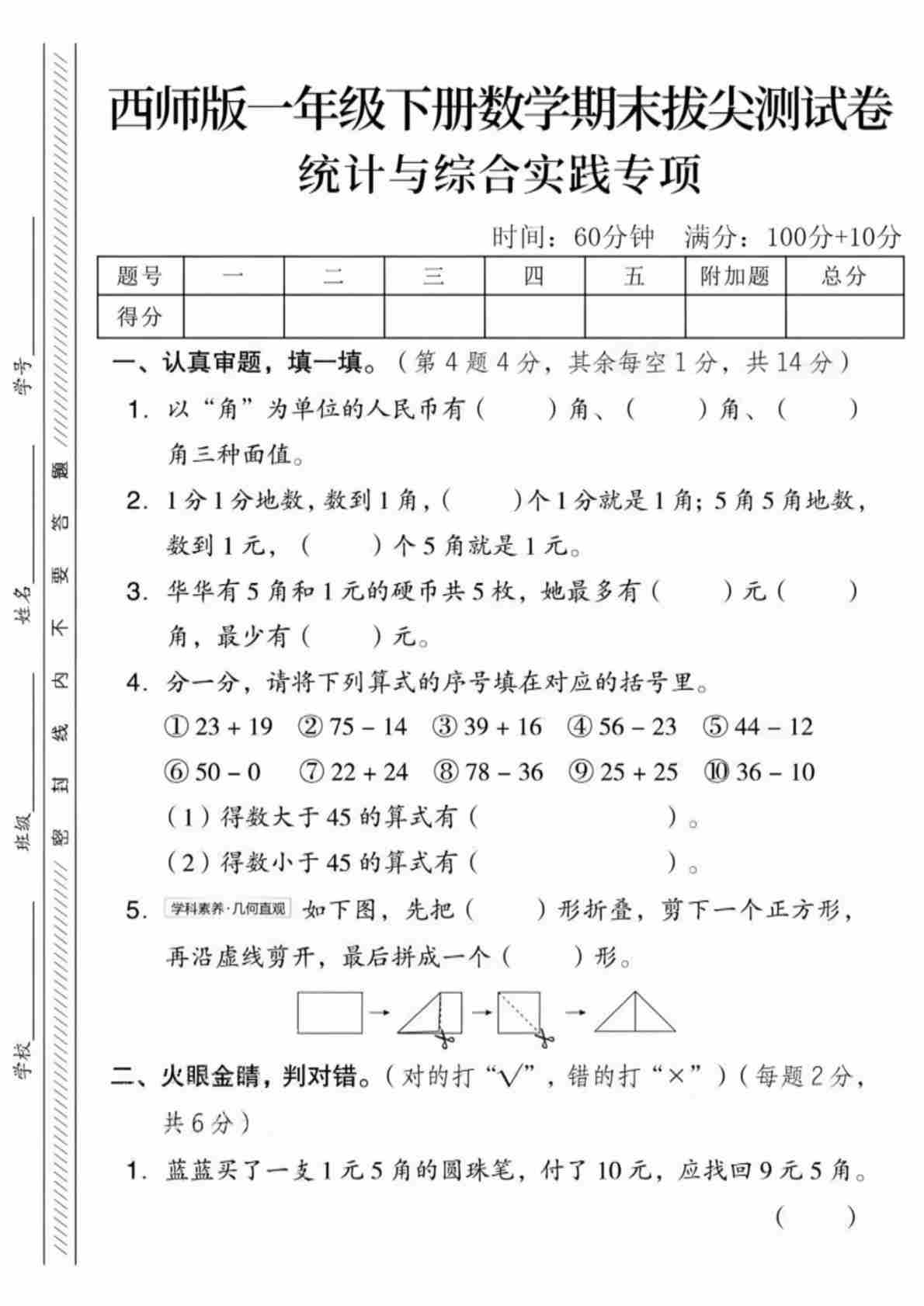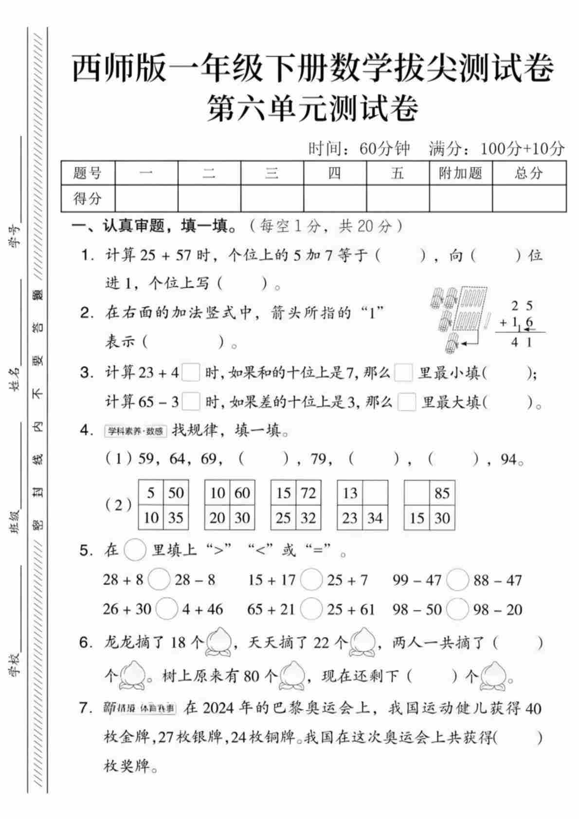 一年级(下)数学 数与代数专项拔尖测试卷《西师版》