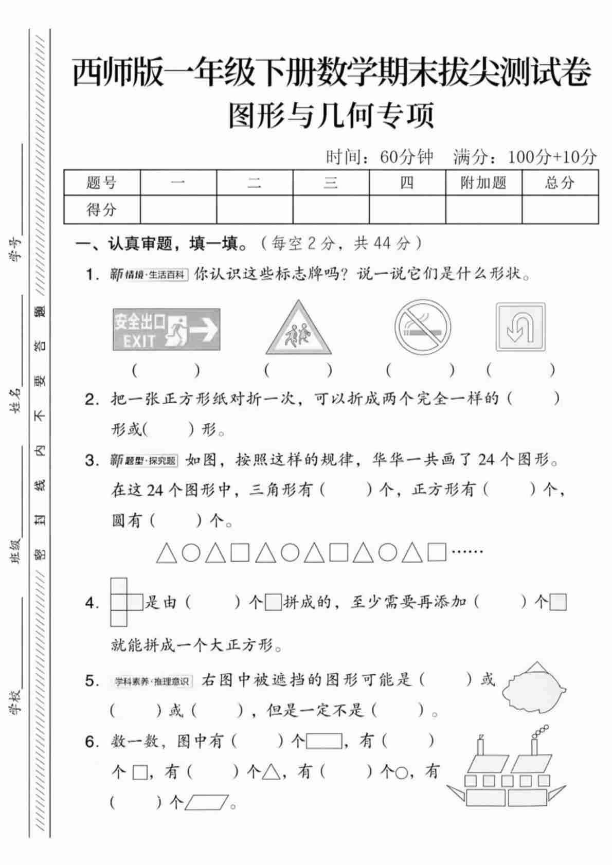 一年级(下)数学 图形专项拔尖测试卷《西师版》