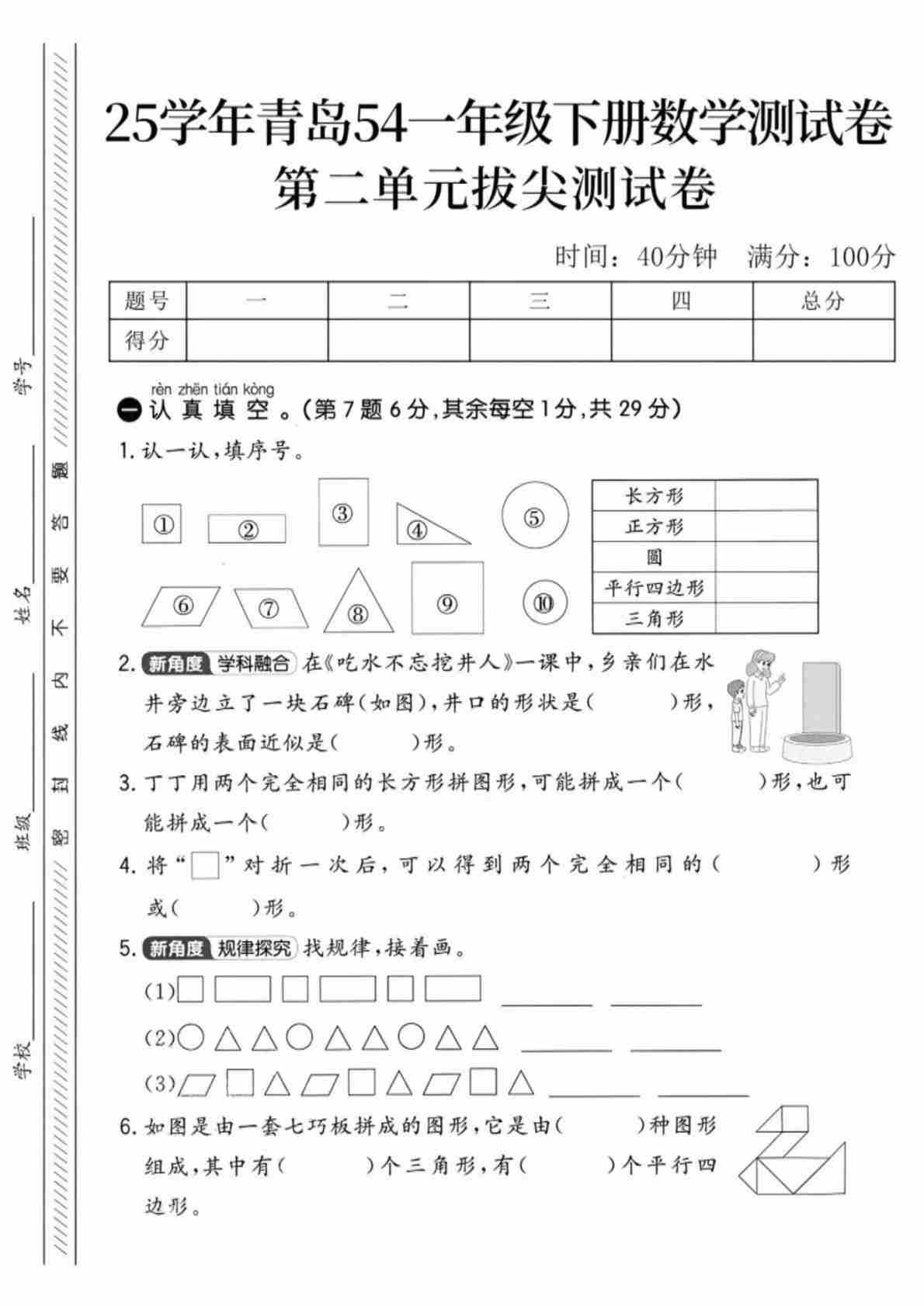 25年一年级(下)数学第二单元拔尖测试卷《青岛54》