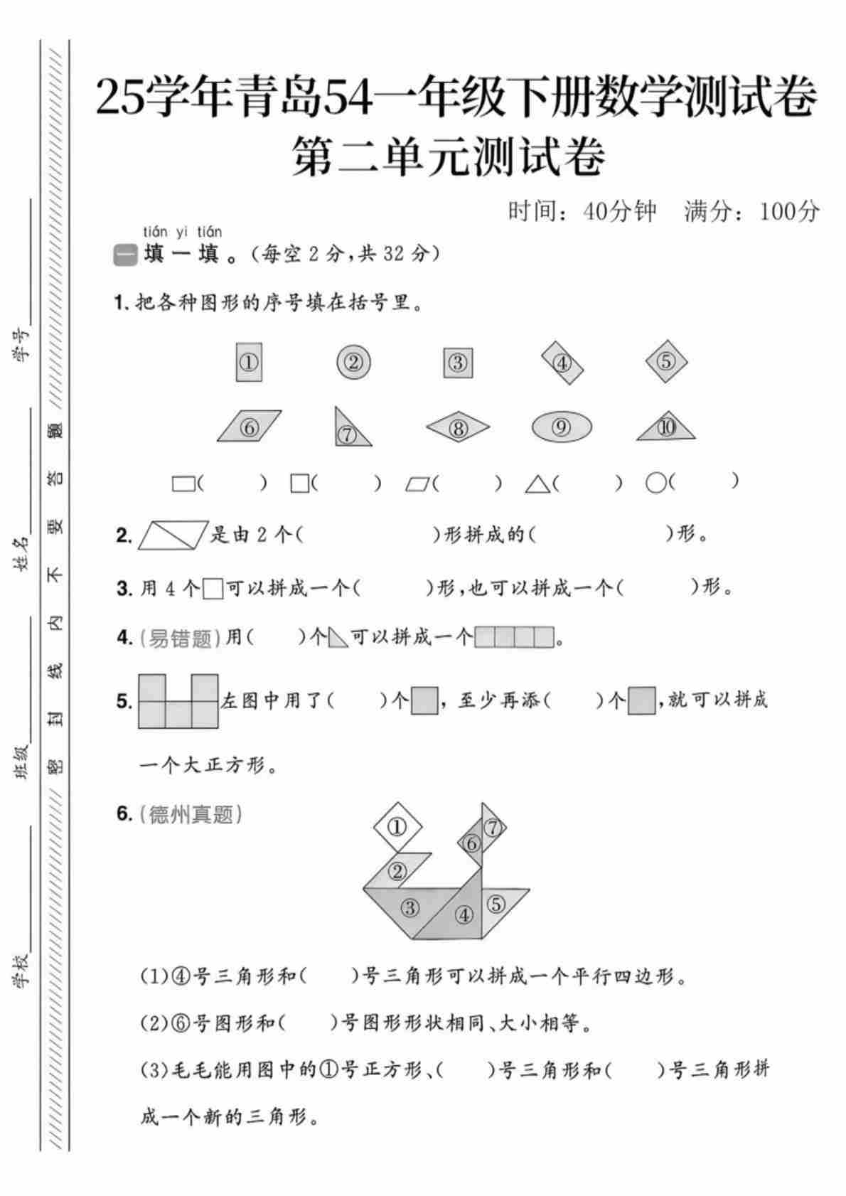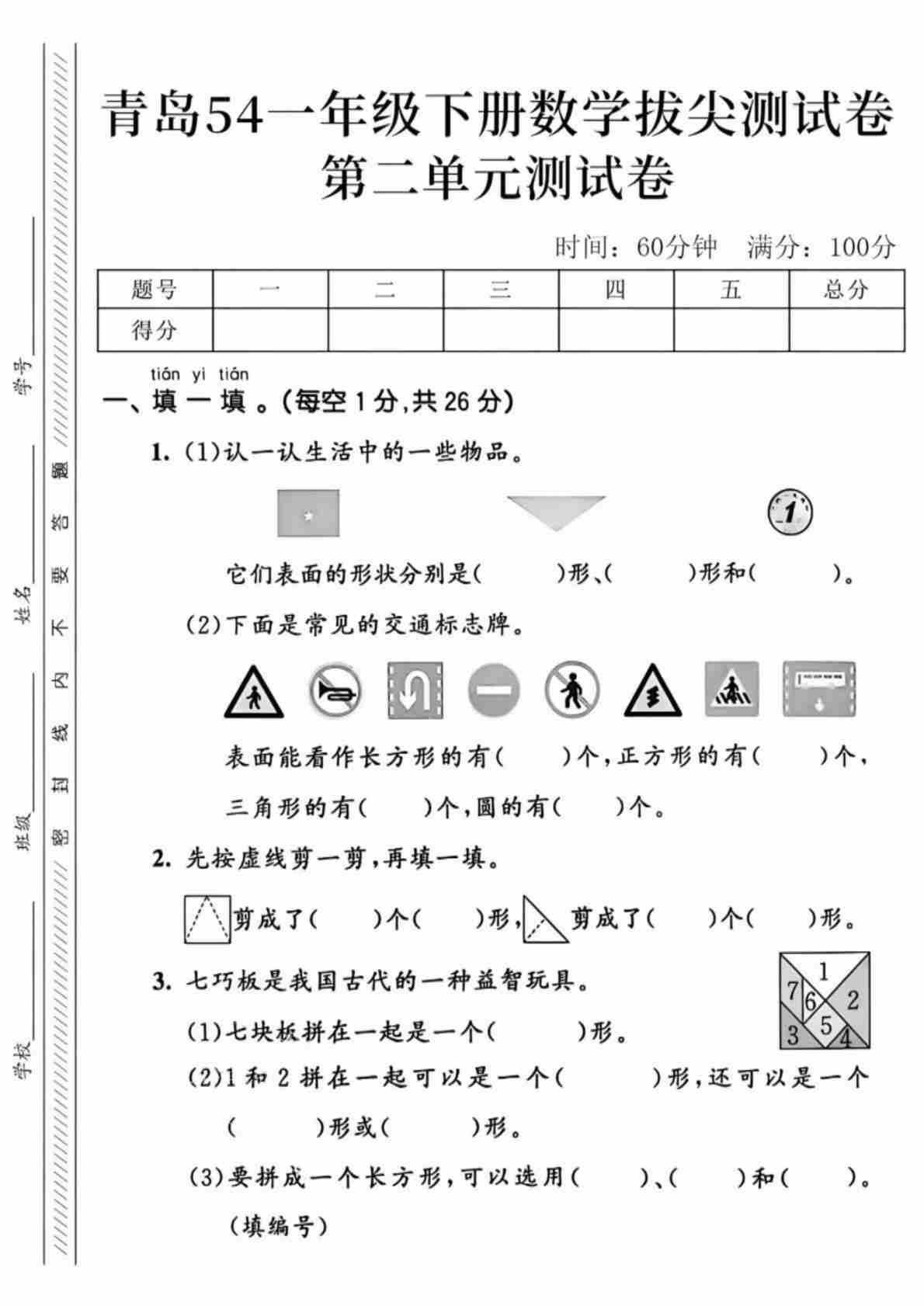 25年一年级(下)数学第二单元拔尖测试卷《青岛54》2