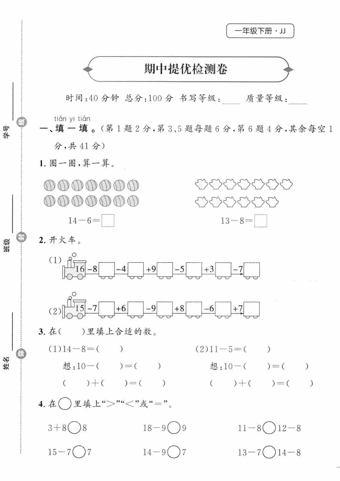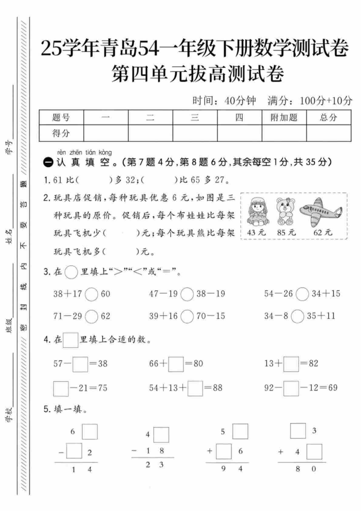 一年级(下)数学 第四单元拔高测试卷《青岛54版》