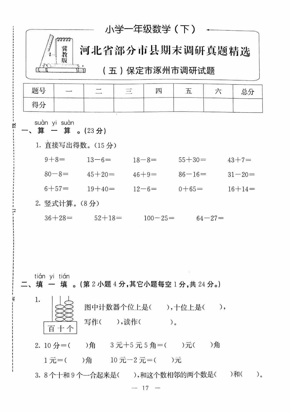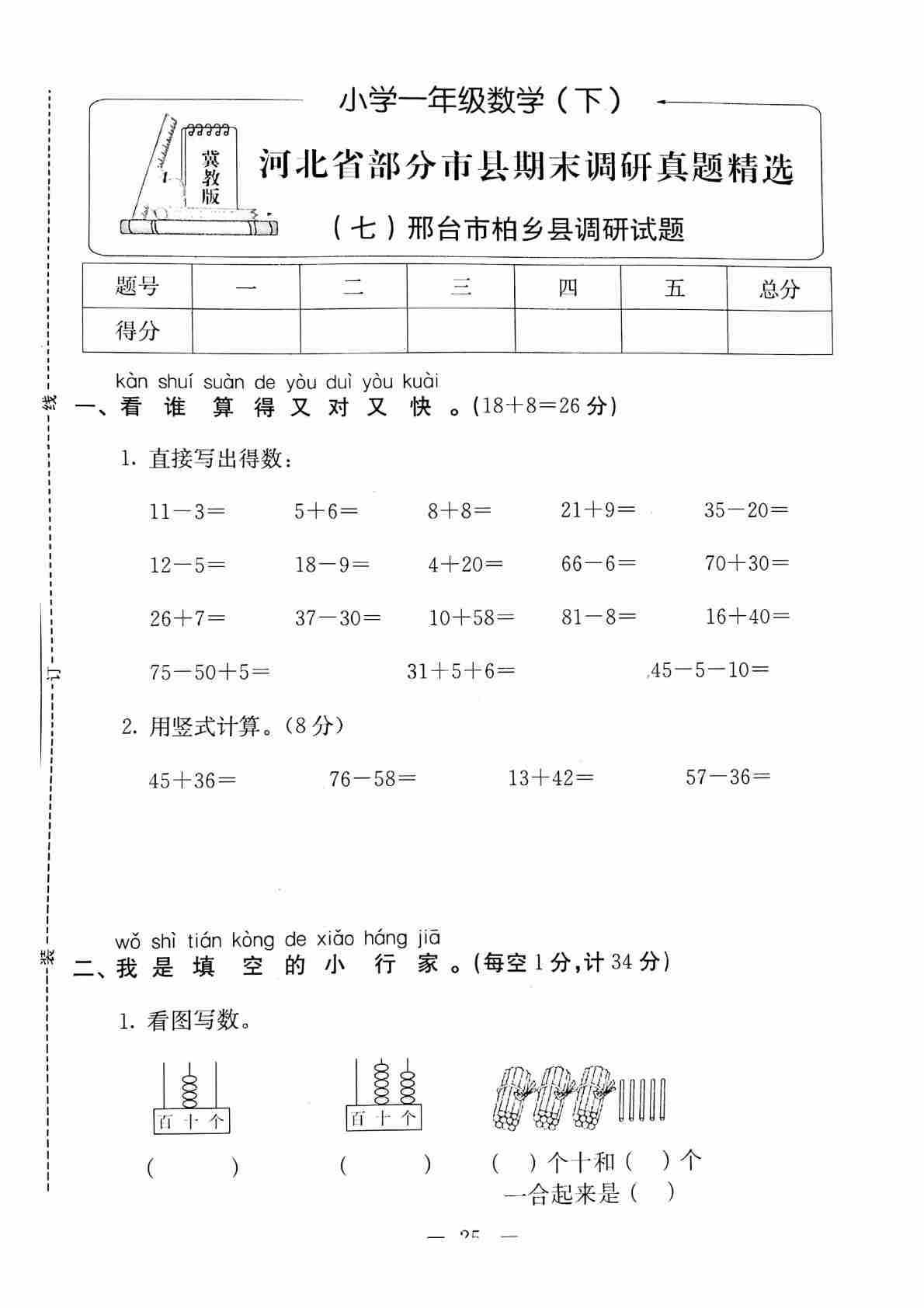 【冀教版】一年级下册(2025春版)数学电子课本