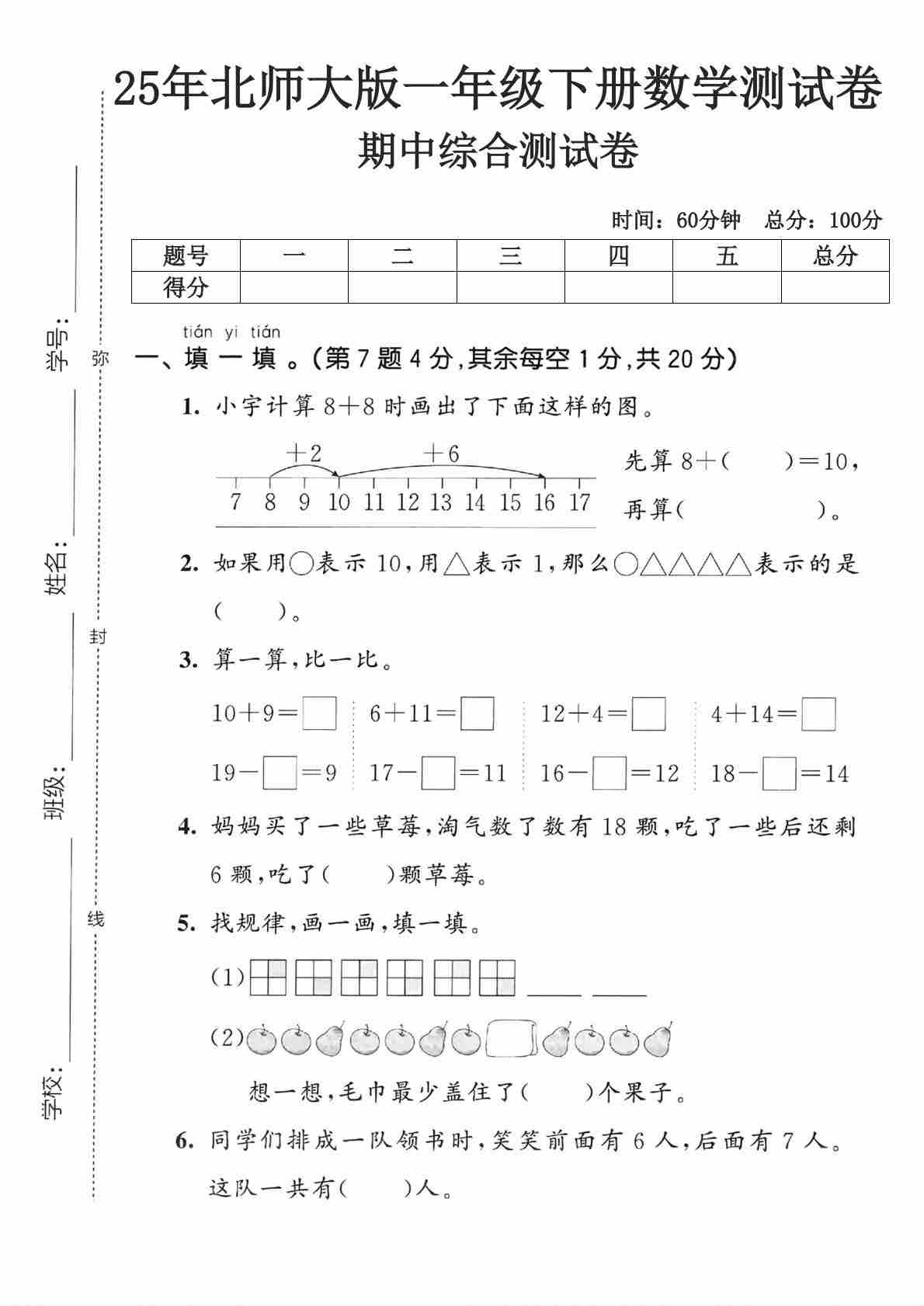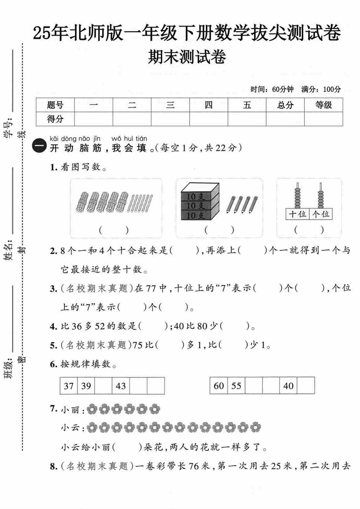 一(下)数学25年北师版期末测试卷 (1)