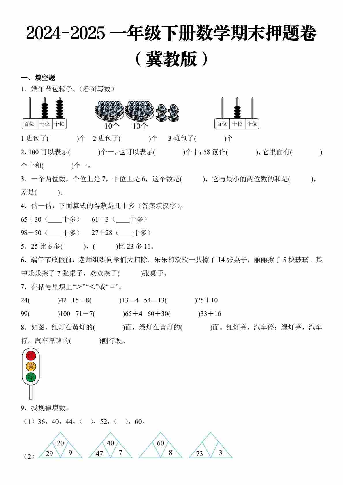 一(下)数学2025 期末押题卷 冀教版