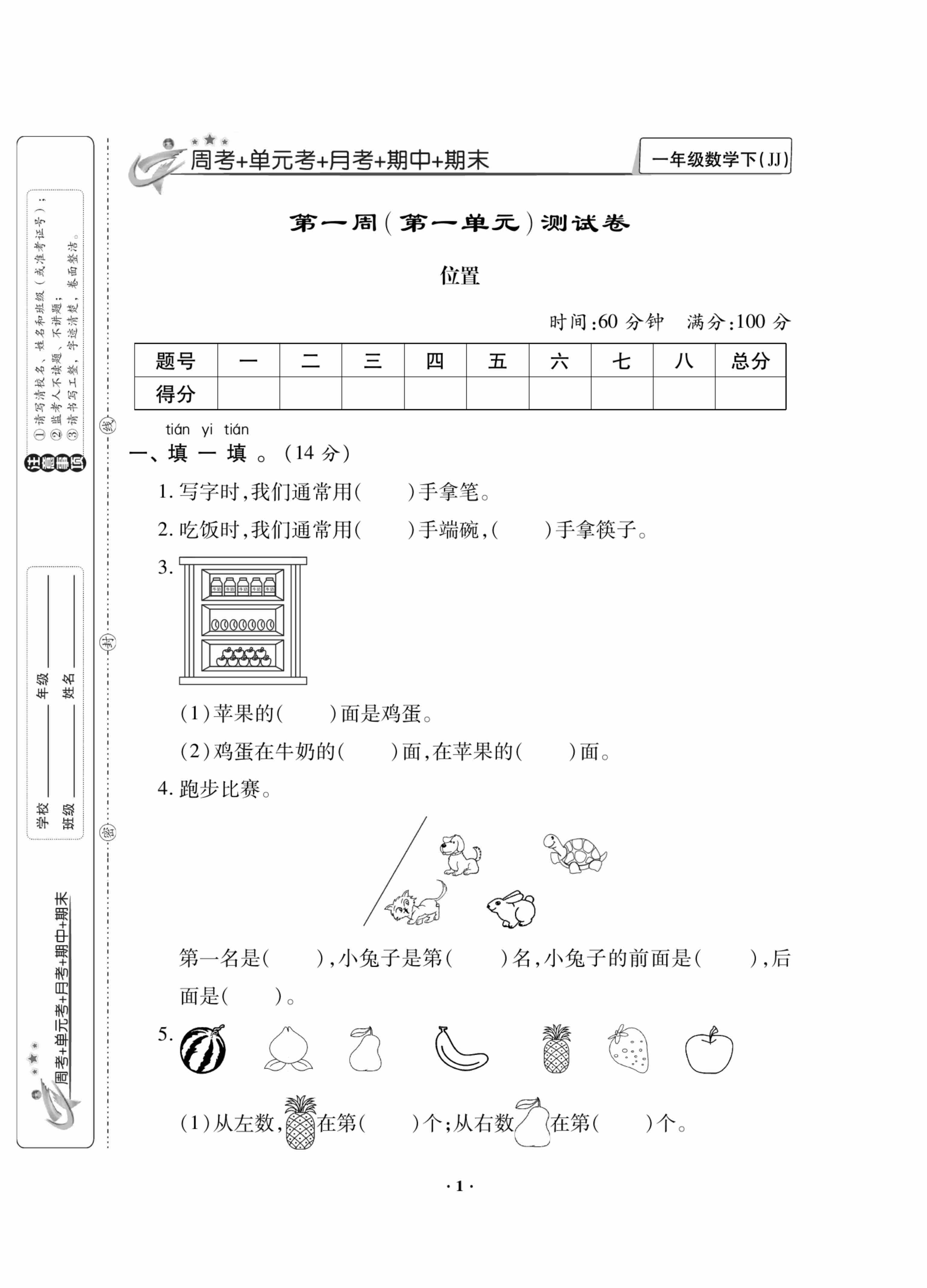 一(下)数学25春翼教版1-3单元测试卷+期中测试卷(典中点 )