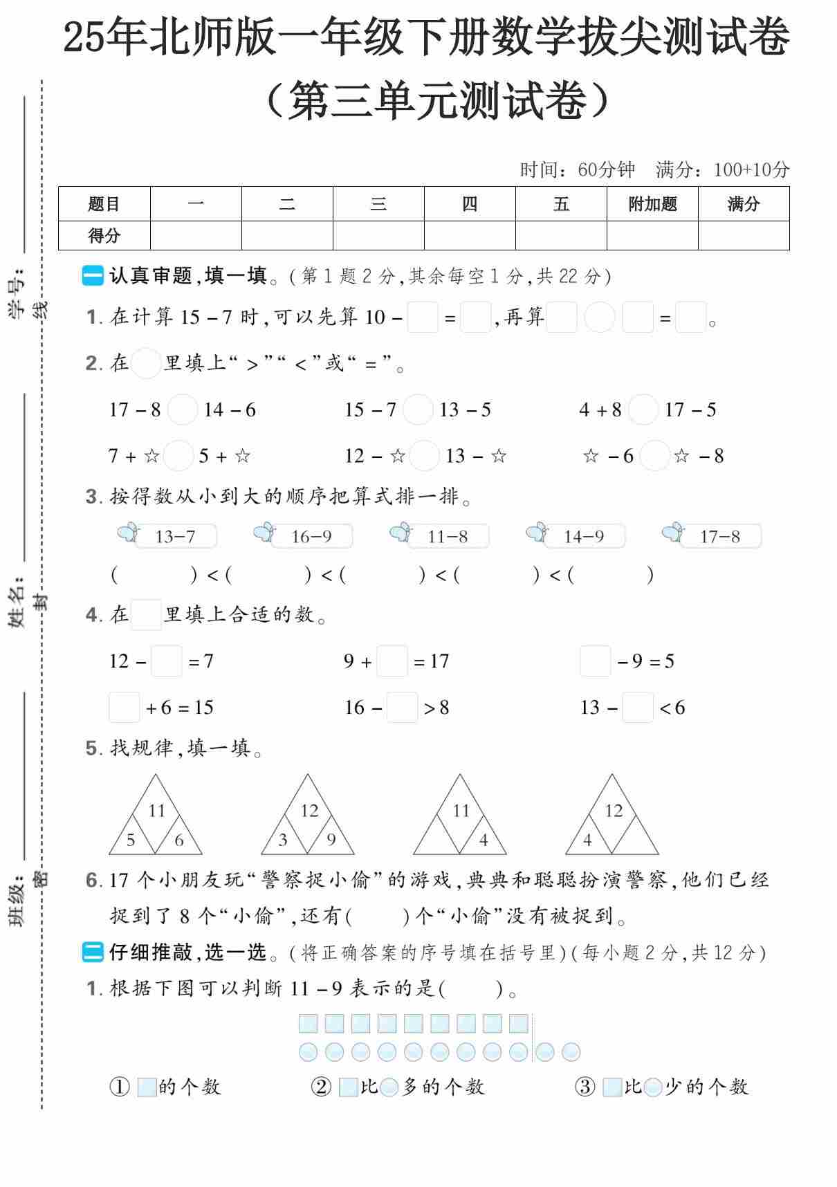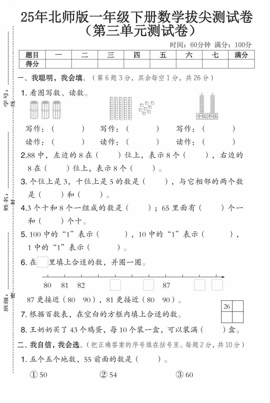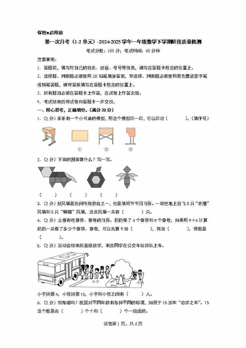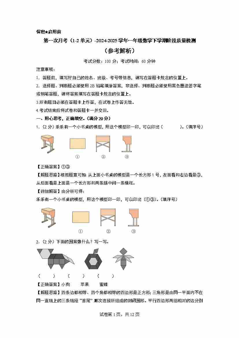 一(下)数学25年苏教版期末测试卷 (3)