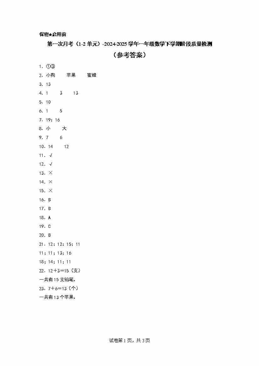 第一次月考(1-2单元)(参考答案)