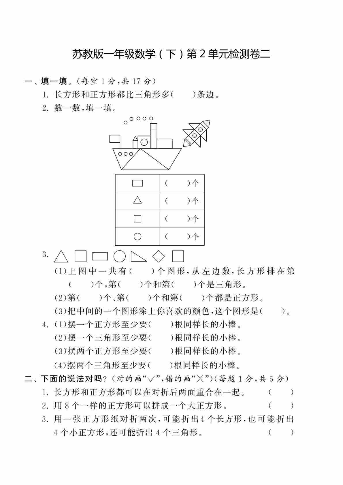 一(下)苏教版数学第二单元测试卷 二