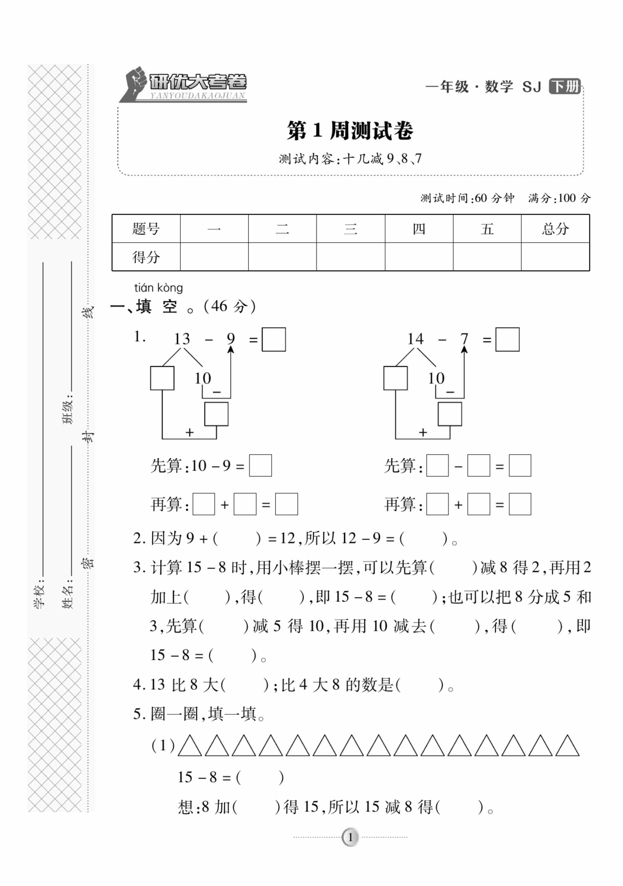 一(下)数学苏教版《研优-大考卷》