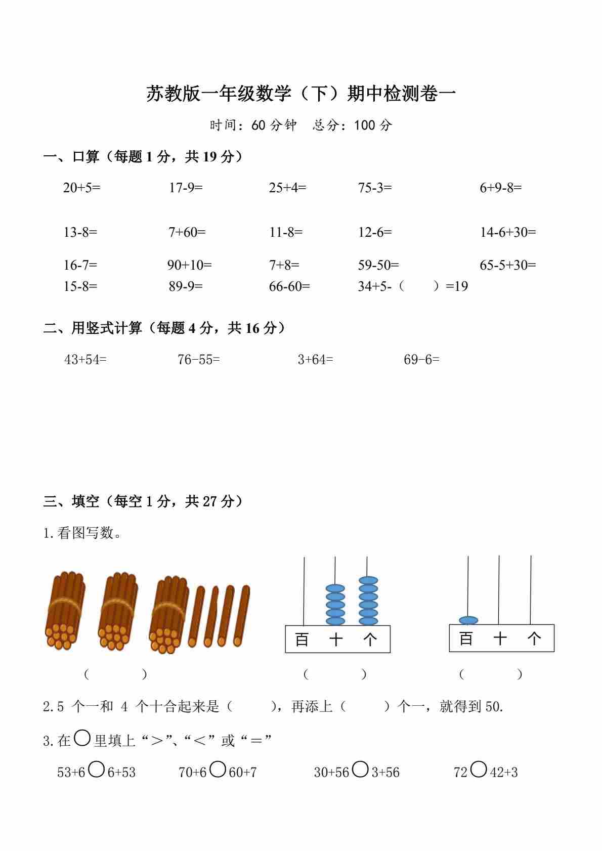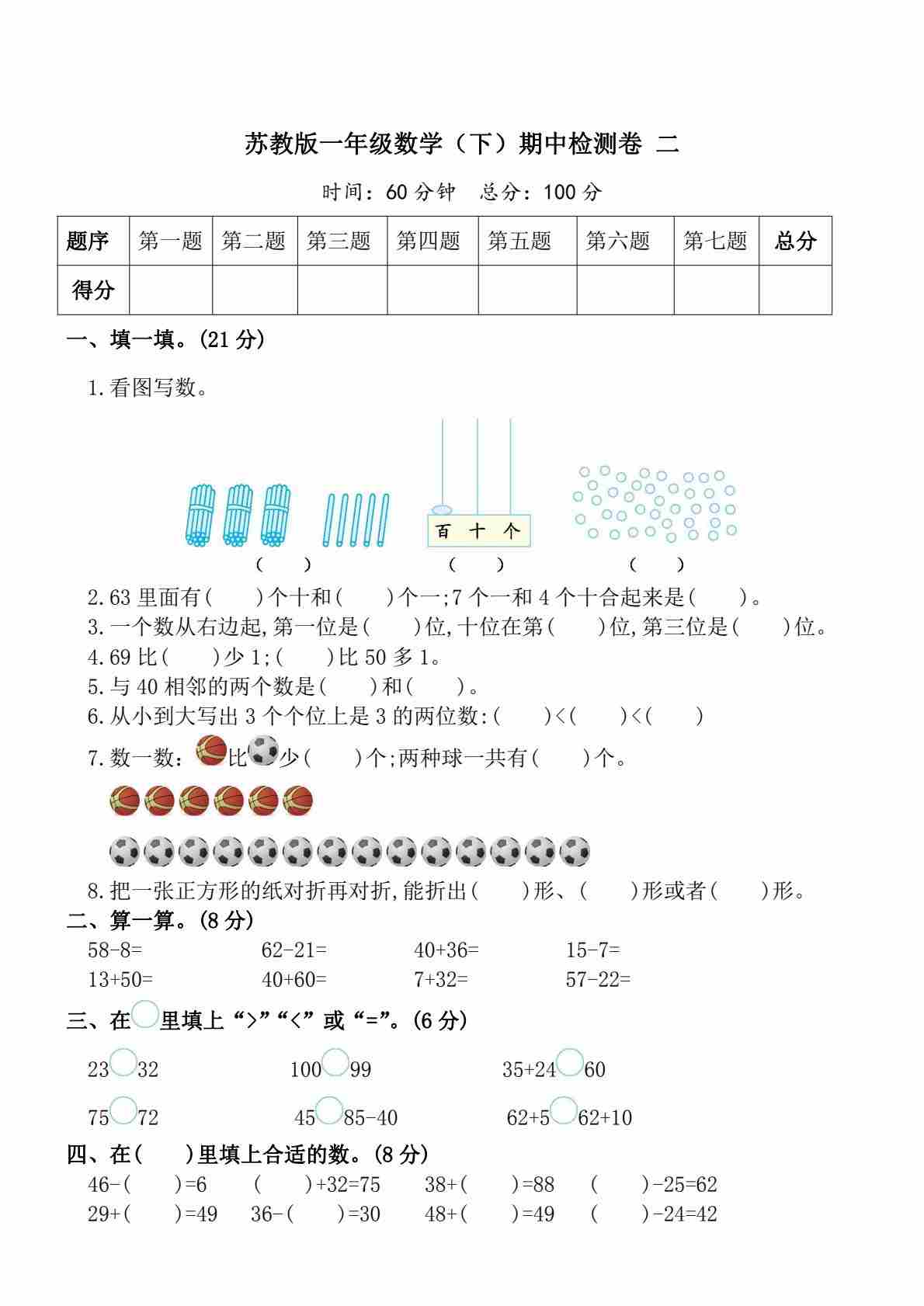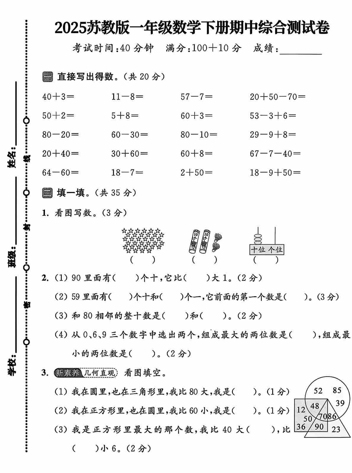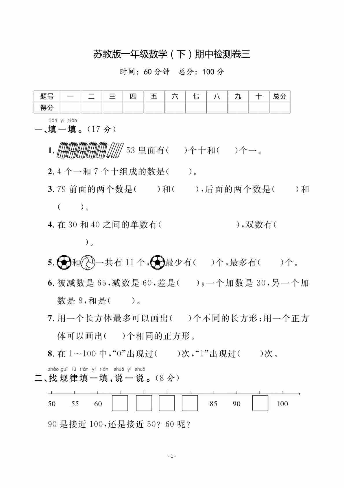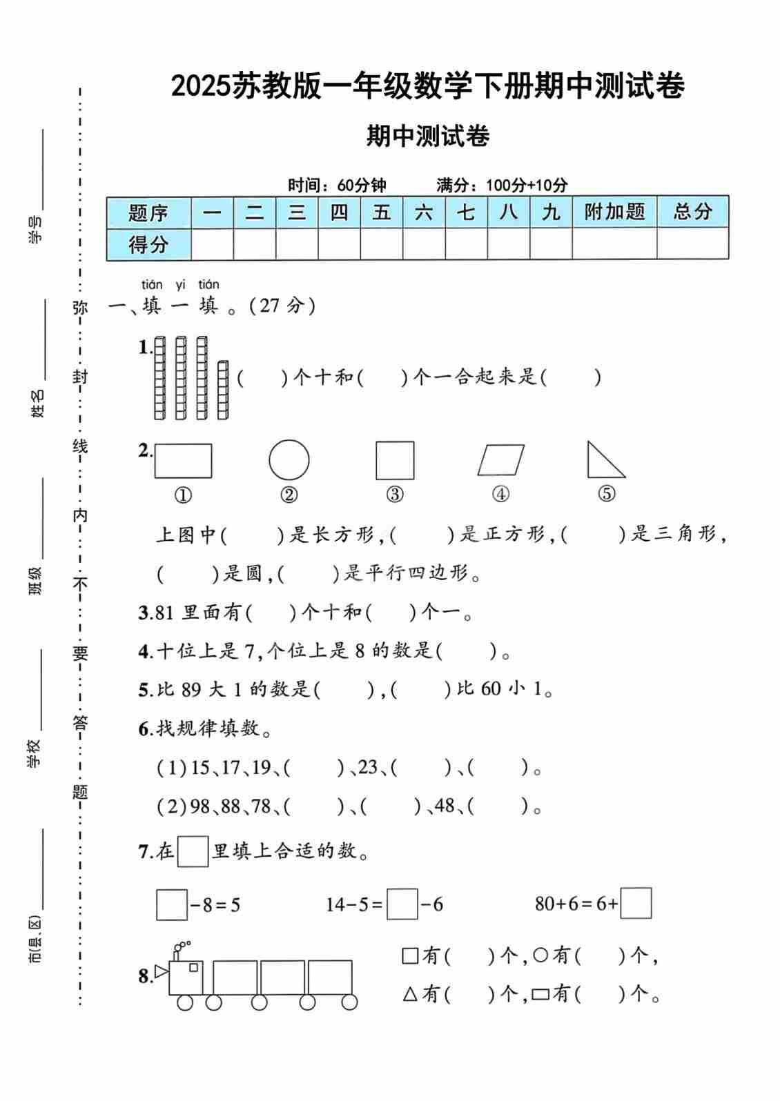 一(下)数学25苏教期中测试卷(8页)