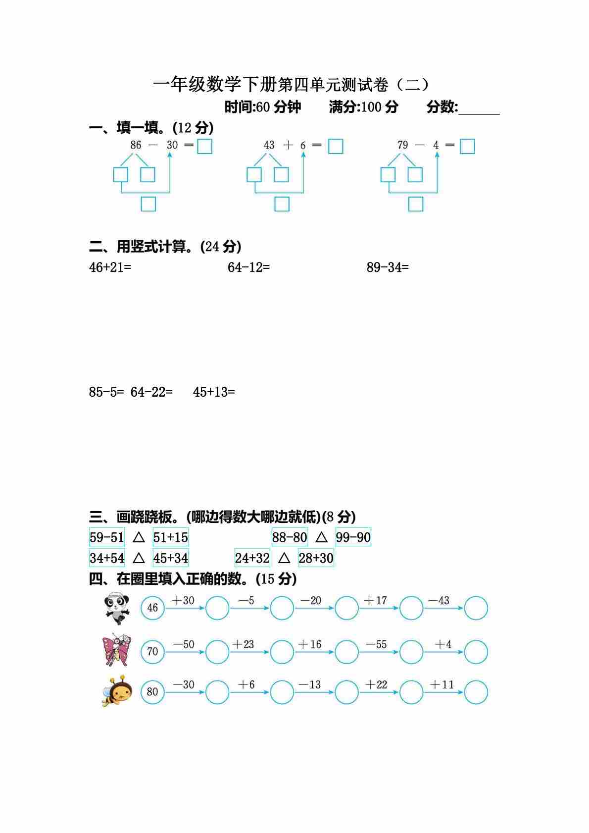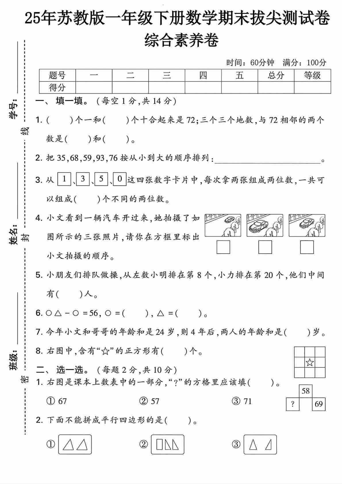 一(下)数学25年苏教版期末测试卷 (2)
