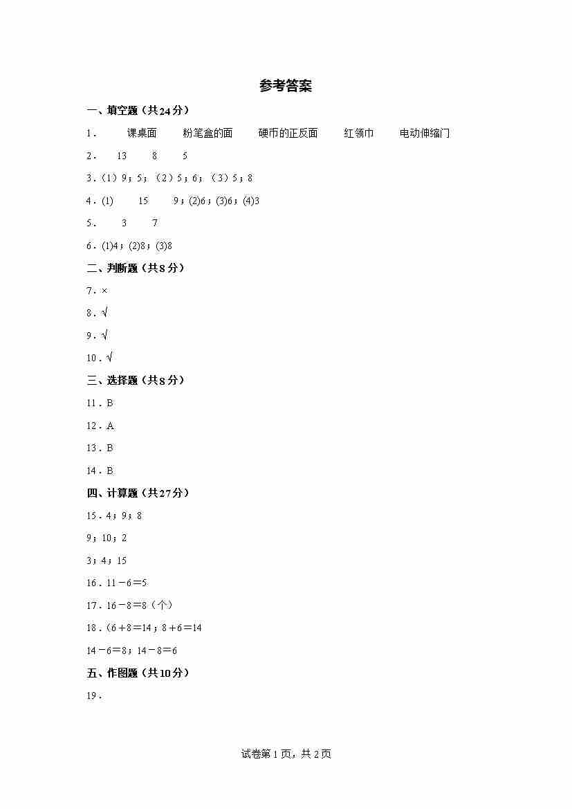 【参考答案】第一次月考检测卷-2024-2025学年一年级数学下册阶段质量检测(人教版)